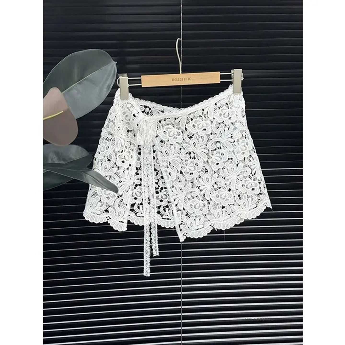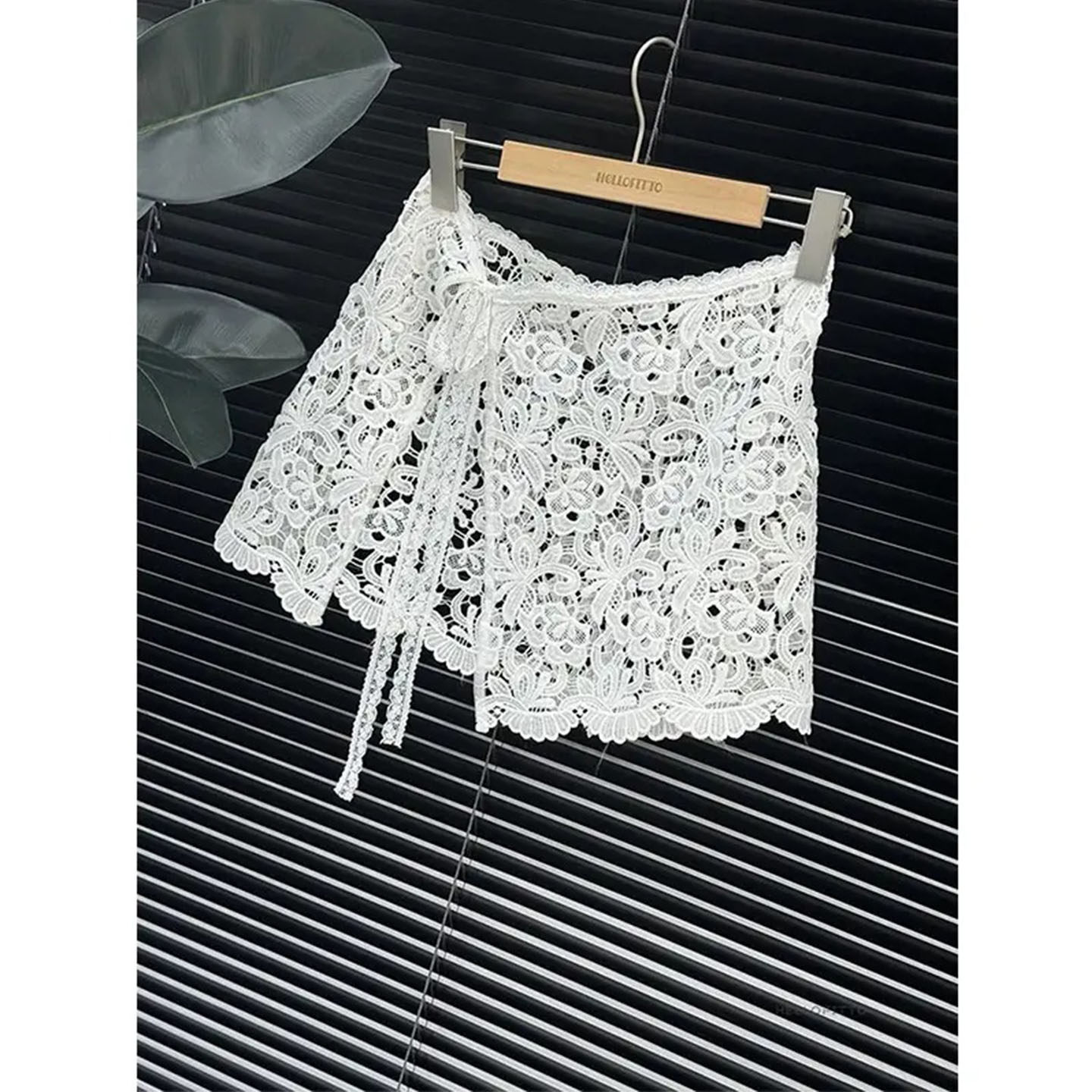 高级感水溶蕾丝四季款叠穿裙帘女下摆叠穿遮臀显瘦系带围裙半身裙
