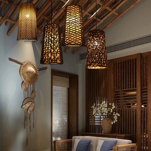 中式禅意吊灯年款藤编灯东南亚酒店民宿客栈茶室创意吊灯组合