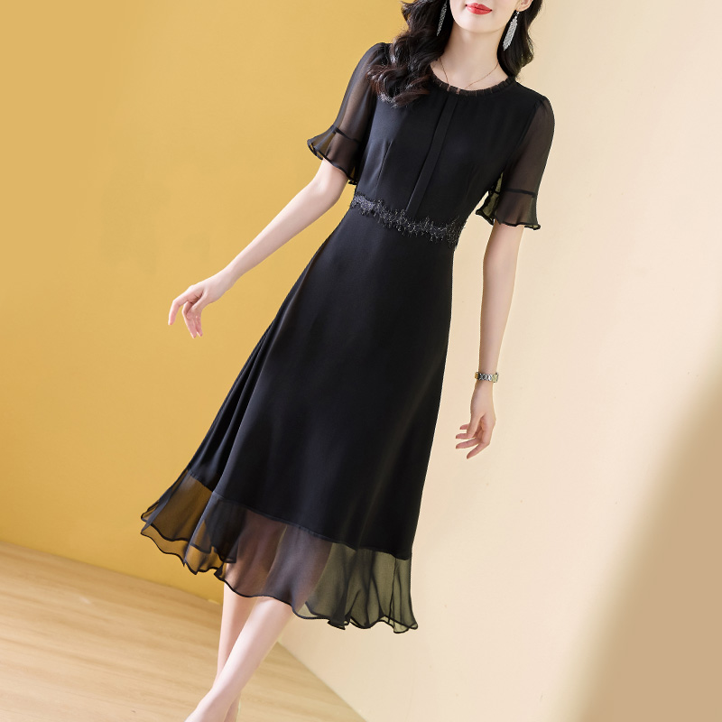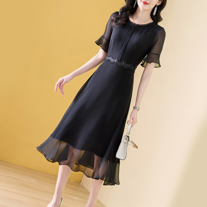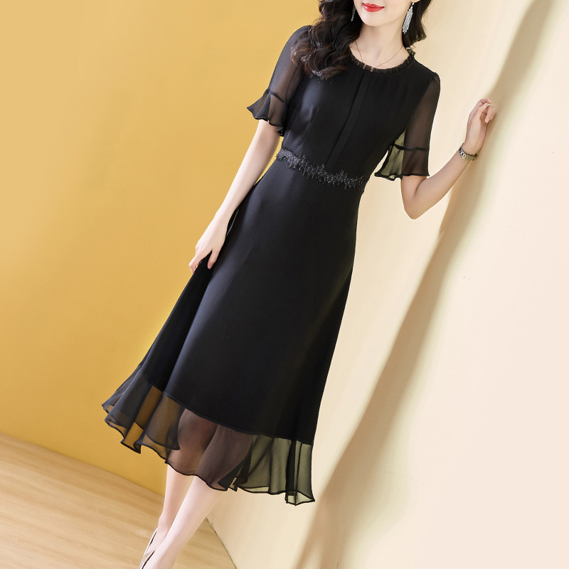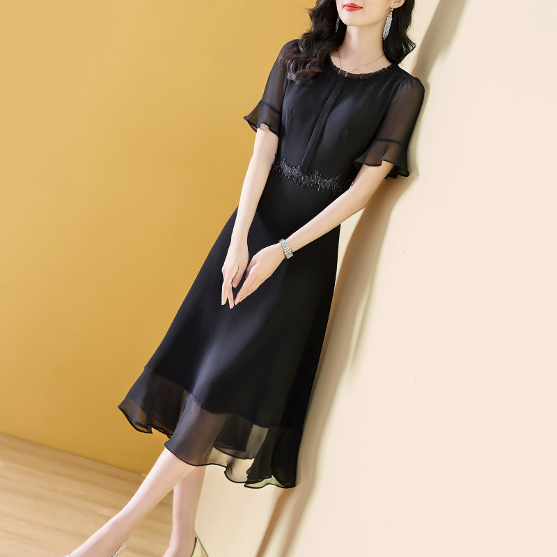 女士连衣裙2025夏季洋气新款微肥中年妈妈修身显瘦遮肚子质感品牌