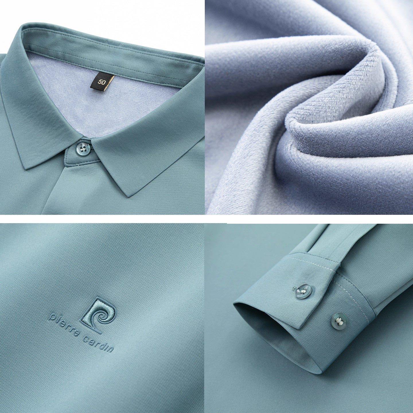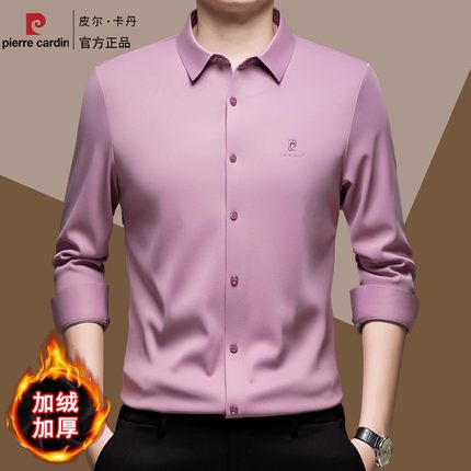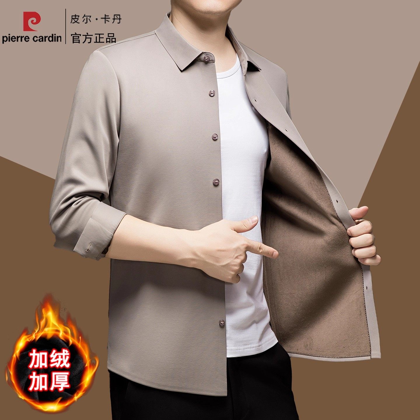 皮尔卡丹桑蚕丝加绒长袖衬衫男