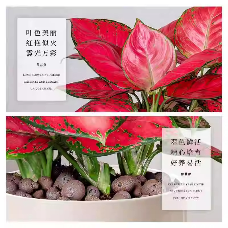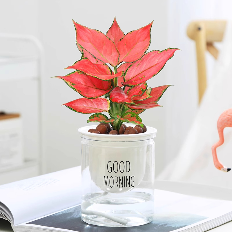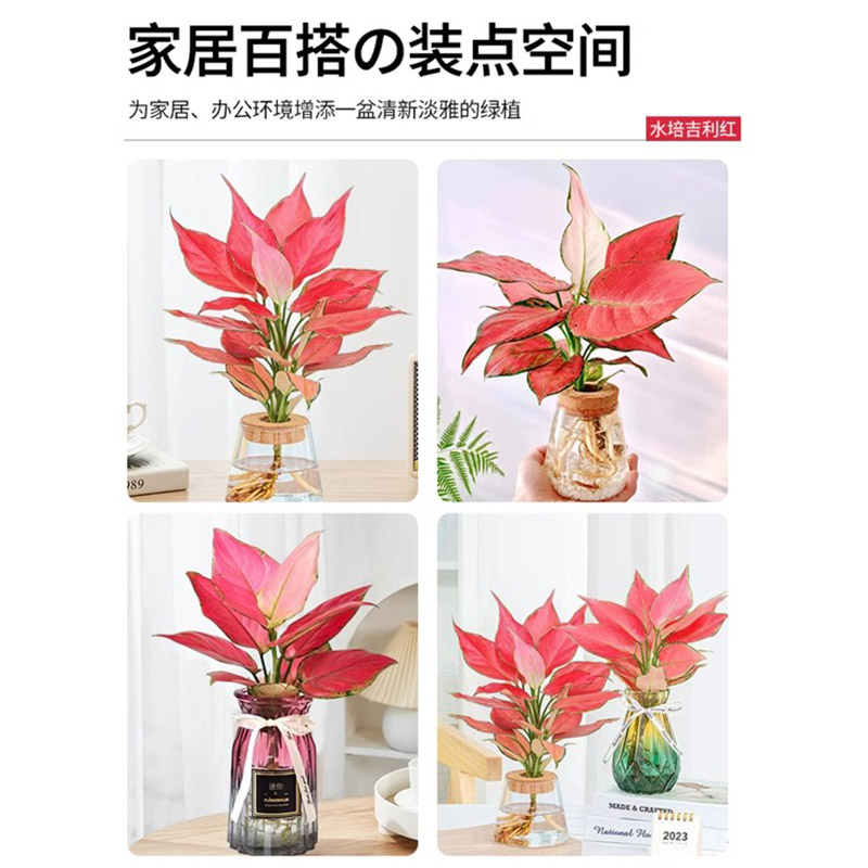 如意吉利红水培如意皇后盆栽办公室内桌面水养绿植万年红好养花卉