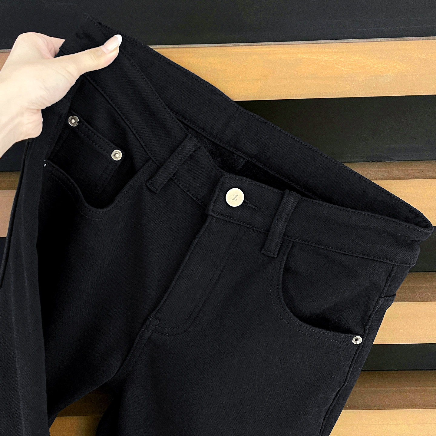 加绒加厚/九分牛仔裤男士/四面弹力防褪色/潮流纯黑色/修身小脚裤