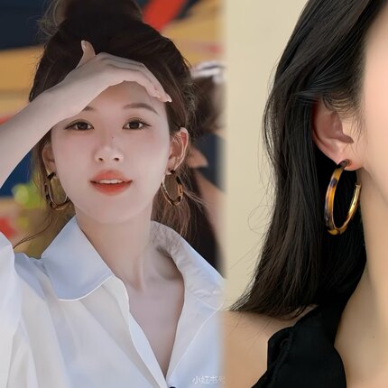 「红茶」赵露思同款豹纹气质耳饰耳环蚊香盘耳夹女耳圈耳钉银圈圈