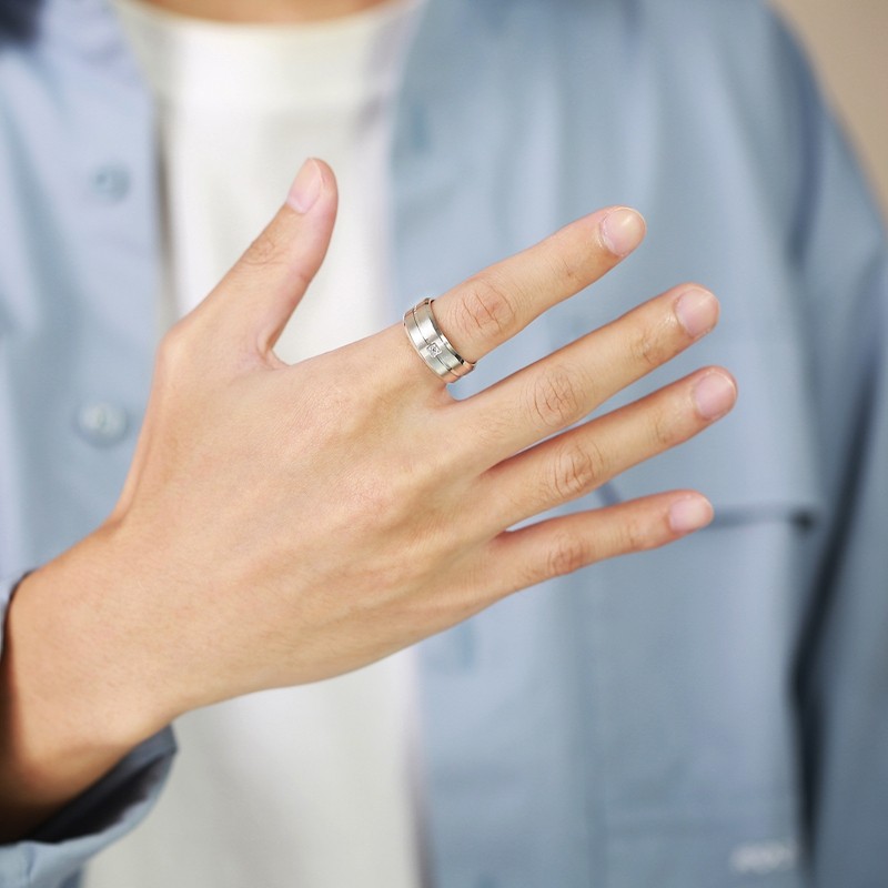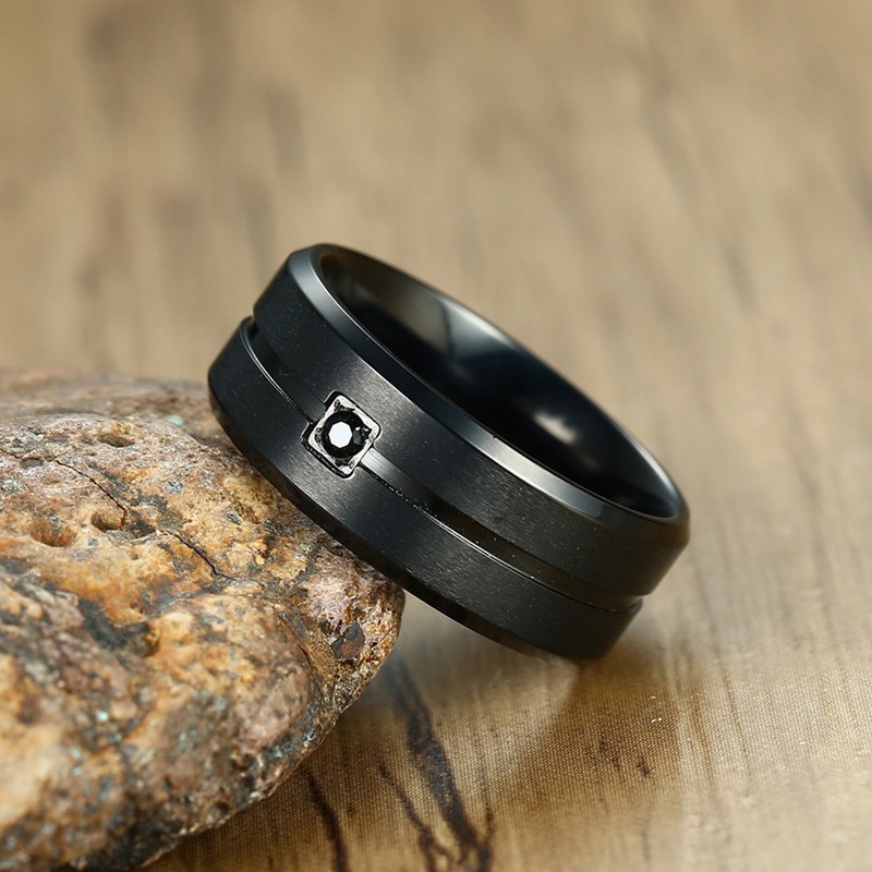 泰爱你时尚单颗锆石戒指潮流男款帅气个性钛钢指环食指单身戒子