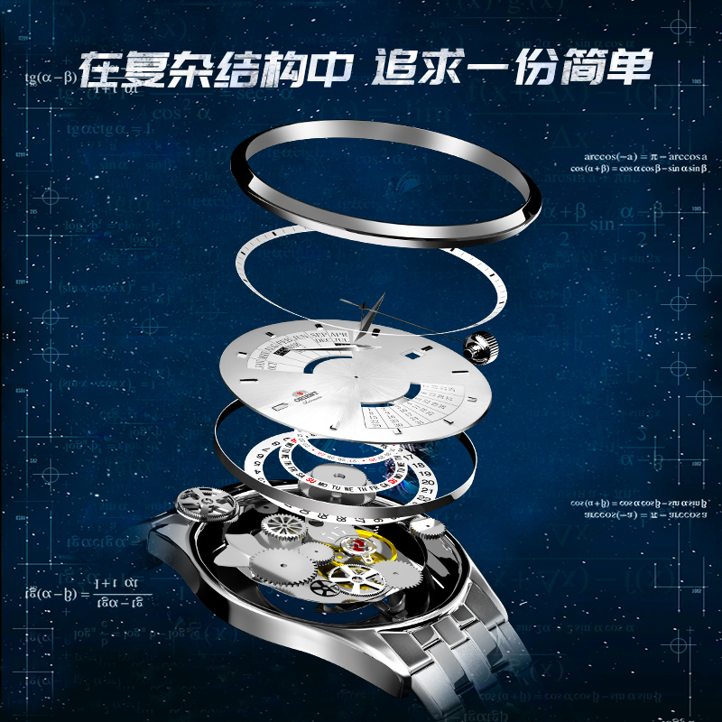 东方双狮机械手表正品原装进口万年历日本商务腕表男七夕礼物