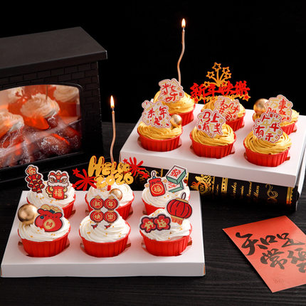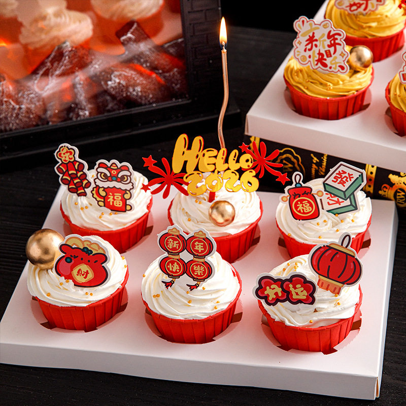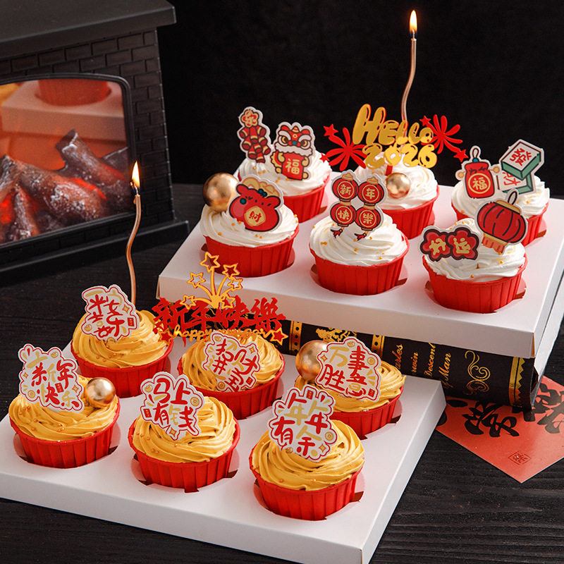 2026马年吉祥如意蛋糕装饰插牌元旦春节新年快乐年年有余插件套装