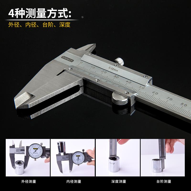 史丹利高精度游标卡尺深度不锈钢0-150/200/300mm机械尺36-150-23
