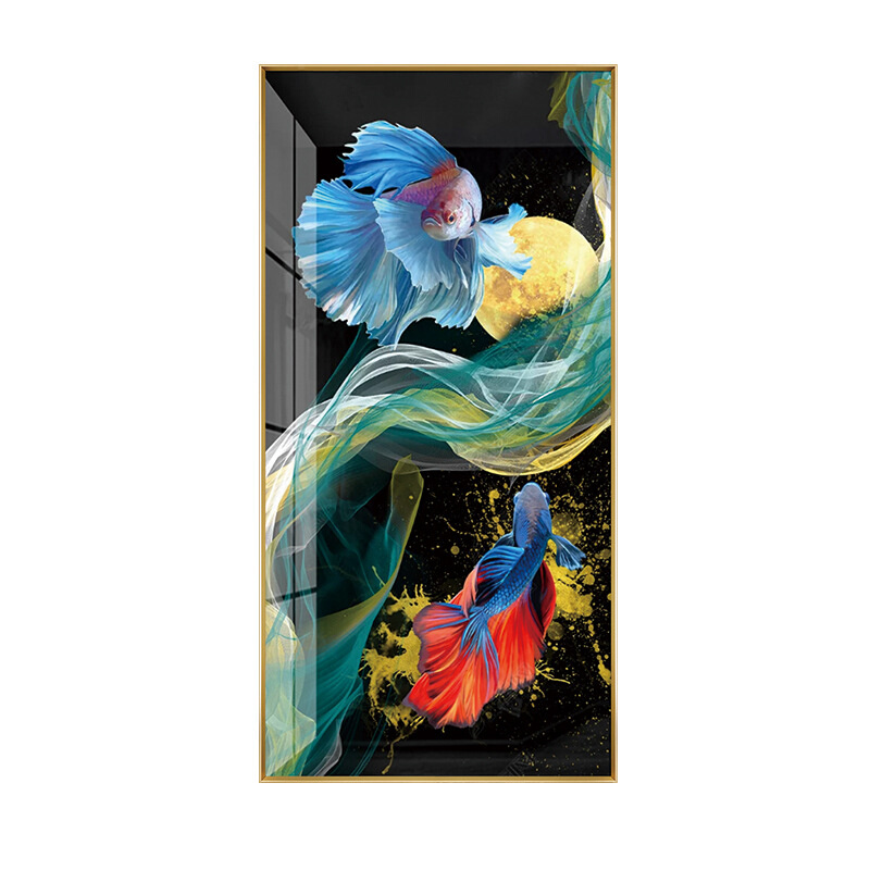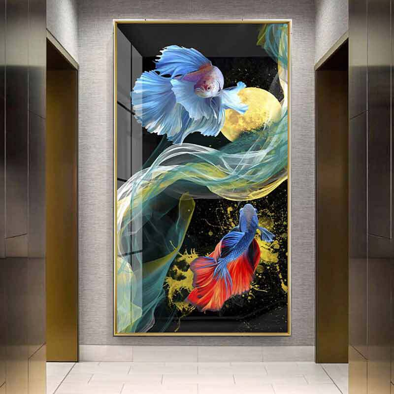 2019新款5d钻石画满钻客厅抽象双鲤鱼竖版玄关点贴钻十字绣钻石画
