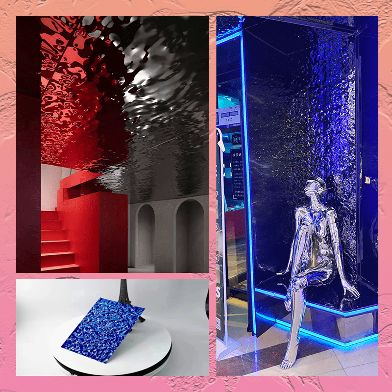 水波纹不锈钢板吊顶KTV金属不锈钢背景墙镜面装饰水波纹贴纸饰面