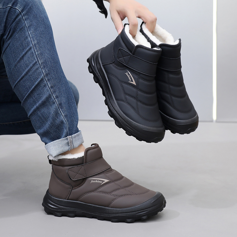 冬季新款老北京棉鞋男加绒绵羊毛雪地靴皮面保暖防水防滑爸爸棉靴