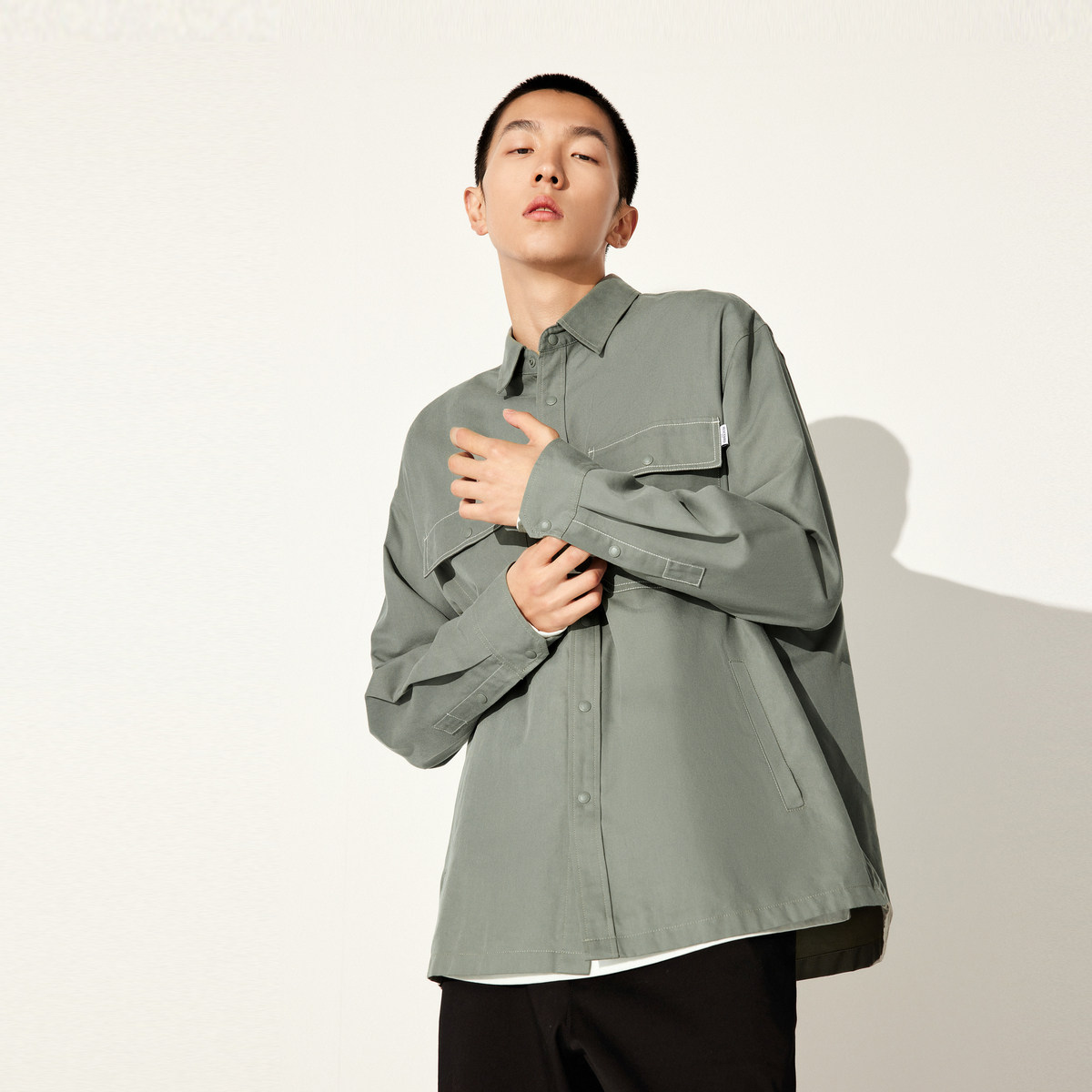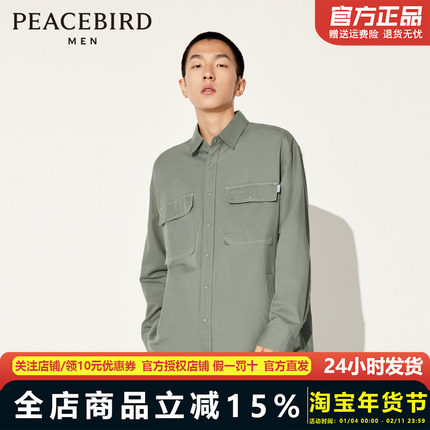 太平鸟男装 休闲衬衫外穿式工装长袖衬衣舒适时尚男上衣B2CHD3205