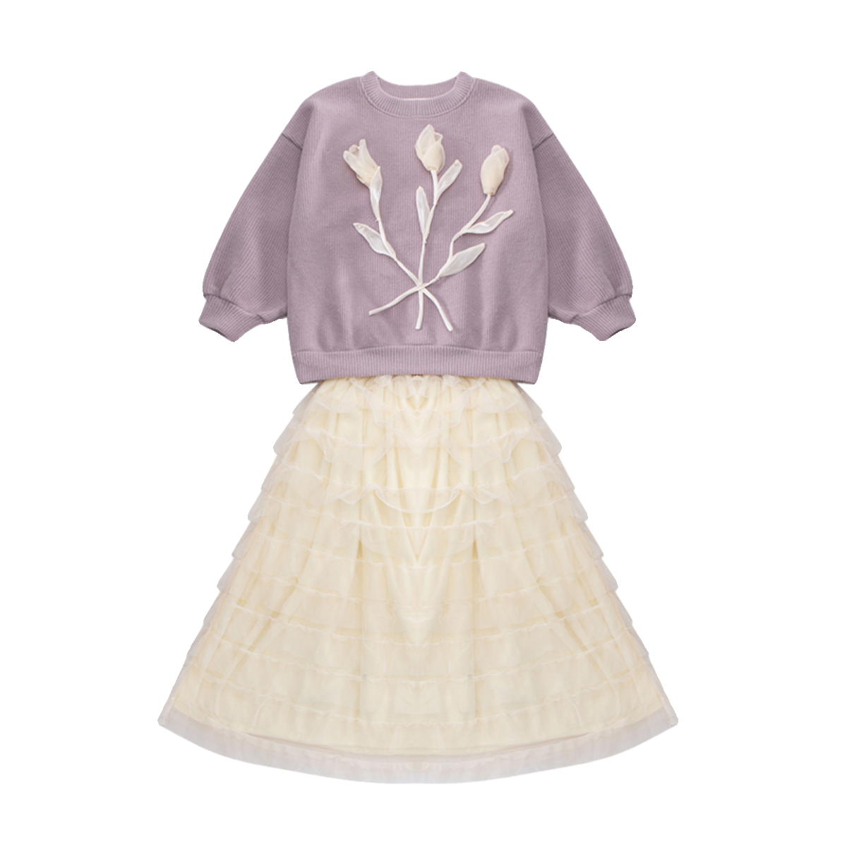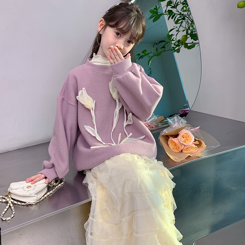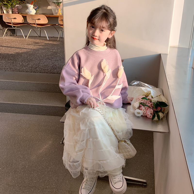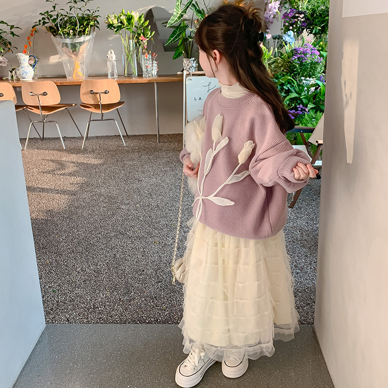 女童公主风加绒毛衣套装秋冬新款中大童洋气冬装半身裙纱裙两件套