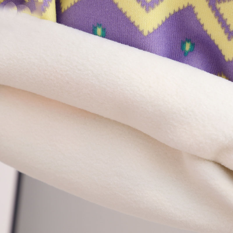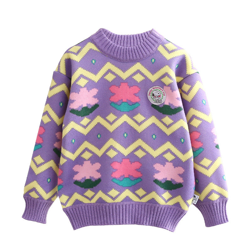 史努比女童针织毛衣紫色小花保暖套头衫小男孩一体绒条纹打底衫