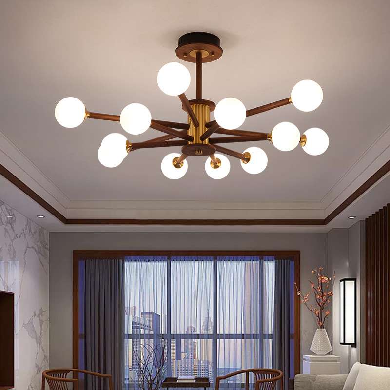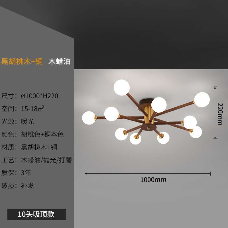 新中式吊灯客厅餐厅胡桃木全铜灯现代简约大气魔豆轻奢高档灯具