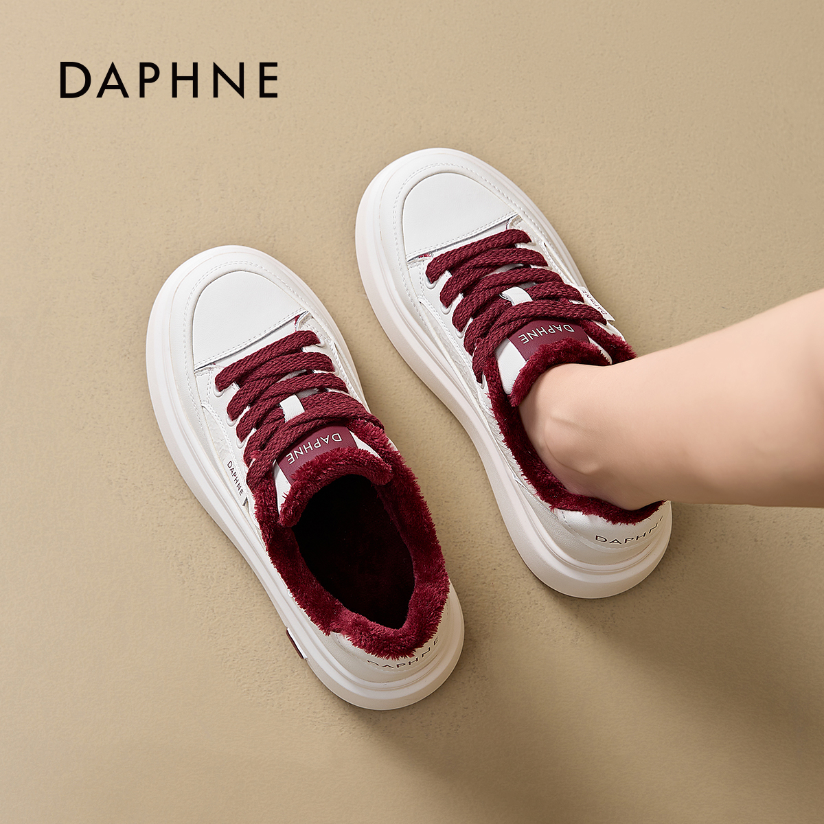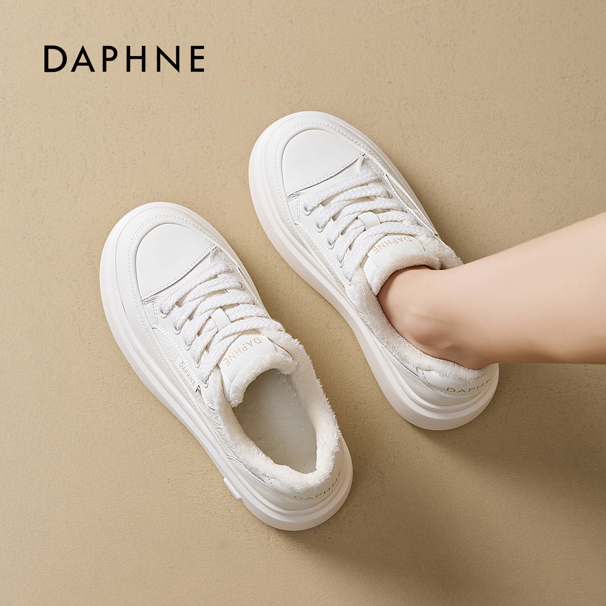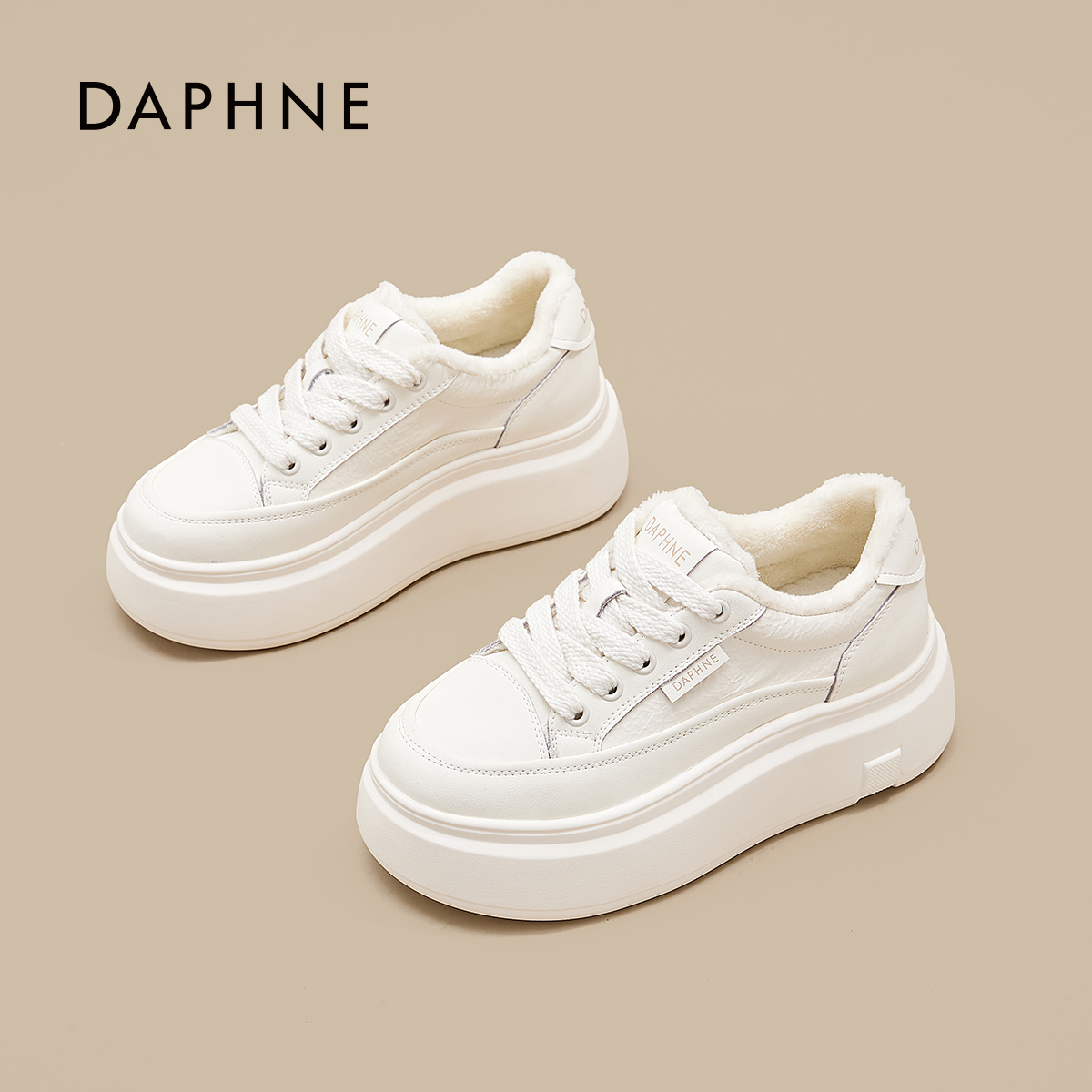 达芙妮厚底休闲小白鞋女2025新款秋冬季加绒加厚轻便增高百搭板鞋