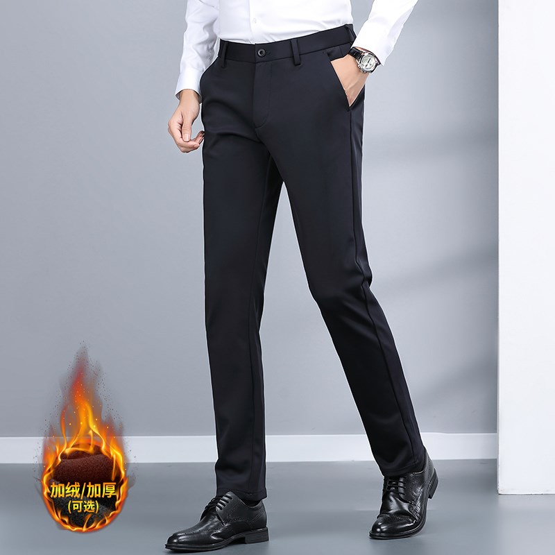 秋冬男商务休闲便单西裤加绒加厚中腰直筒男裤中青年职业工装男裤