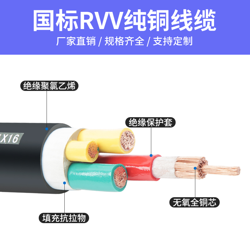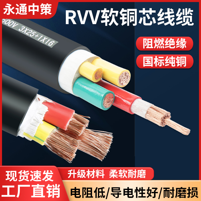 永通中策国标RVV电缆线 2 3 4 5芯 10 25 35平方三相四五线软电缆