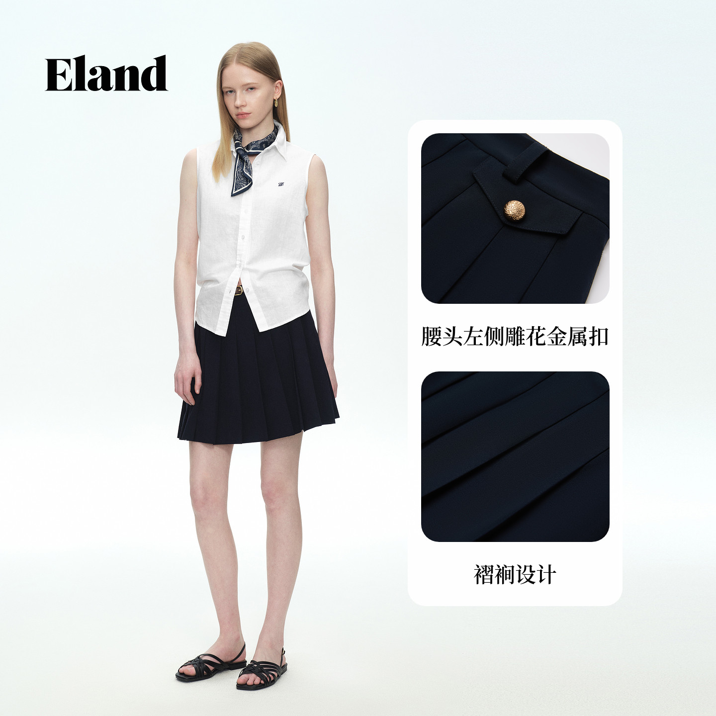Eland衣恋半身裙女纯色气质减龄收腰短裙百褶裙2026春夏新款