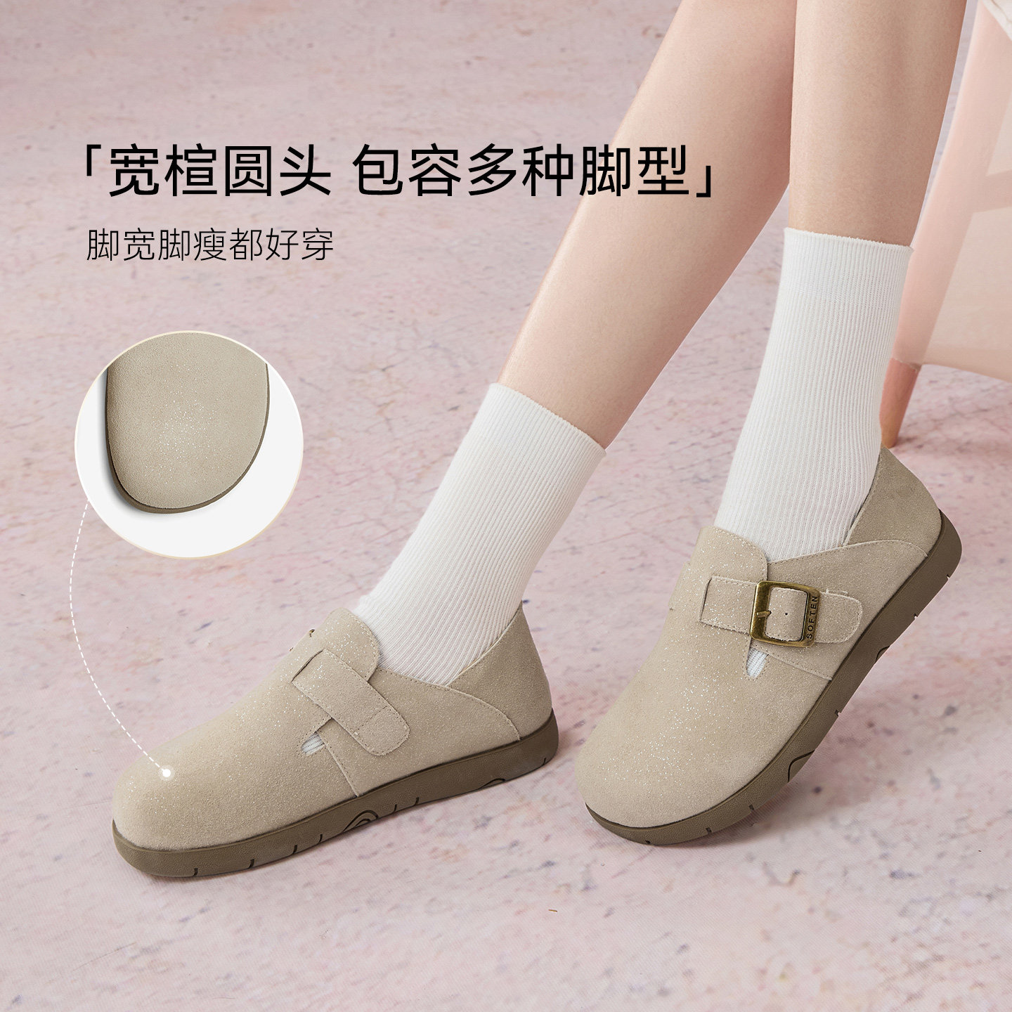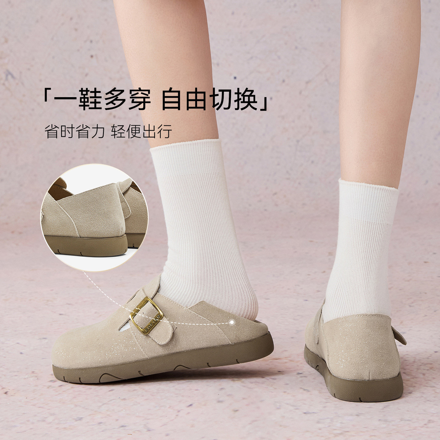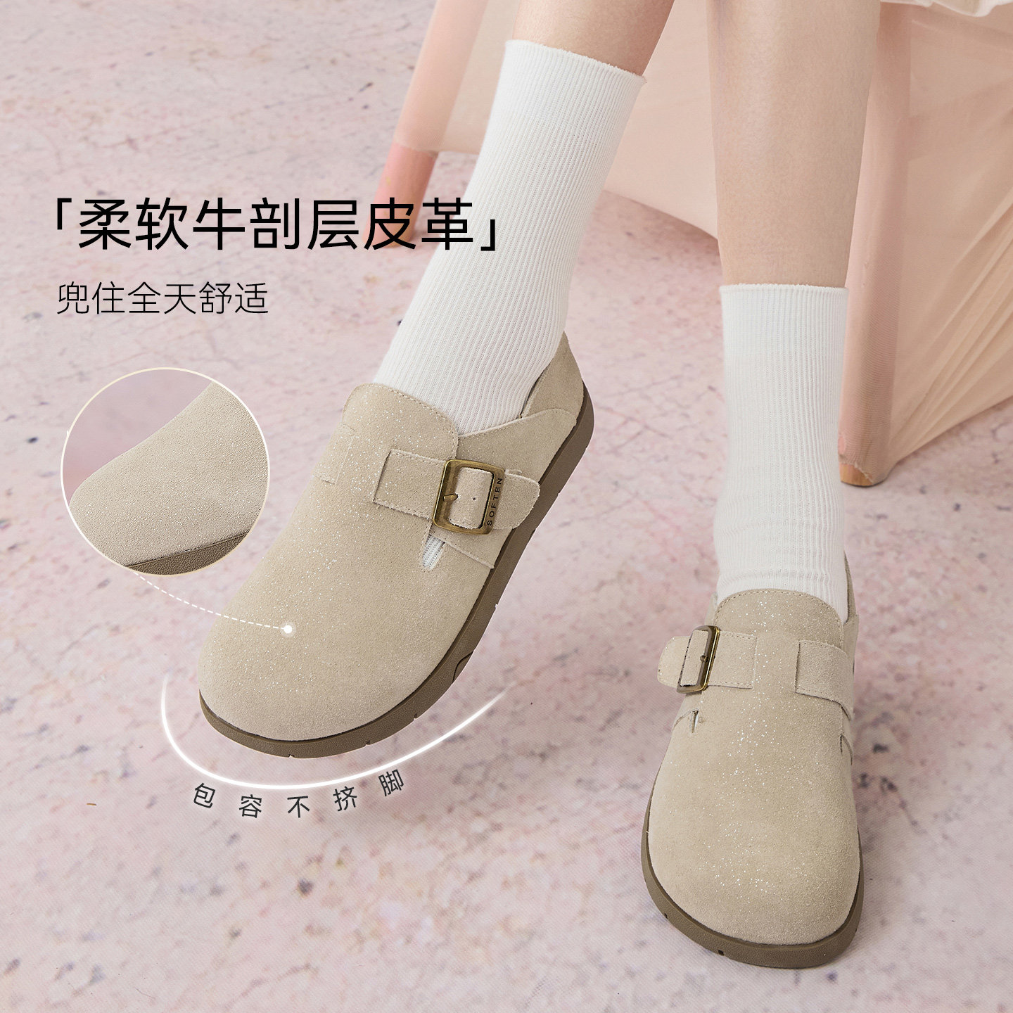 百思图2025秋季新款商场同款勃肯鞋时尚复古女单鞋D3288CM5