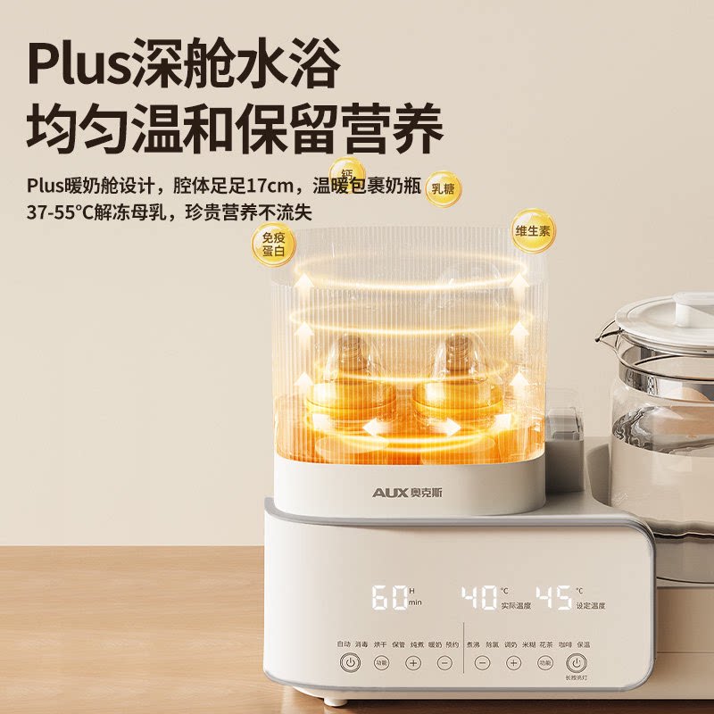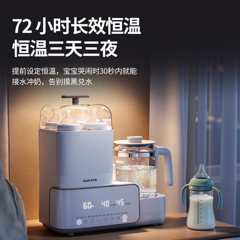 奥克斯恒温水壶婴儿专用调奶器玻璃奶瓶消毒器二三合一体机带烘干