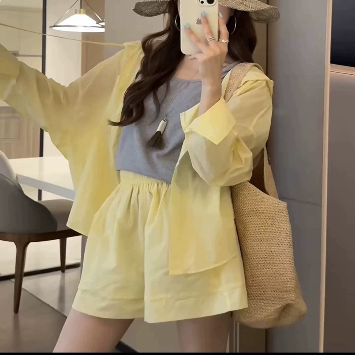 冰丝休闲外穿连帽轻薄外套女2025新款防晒衣百搭垂感短裤时尚套装