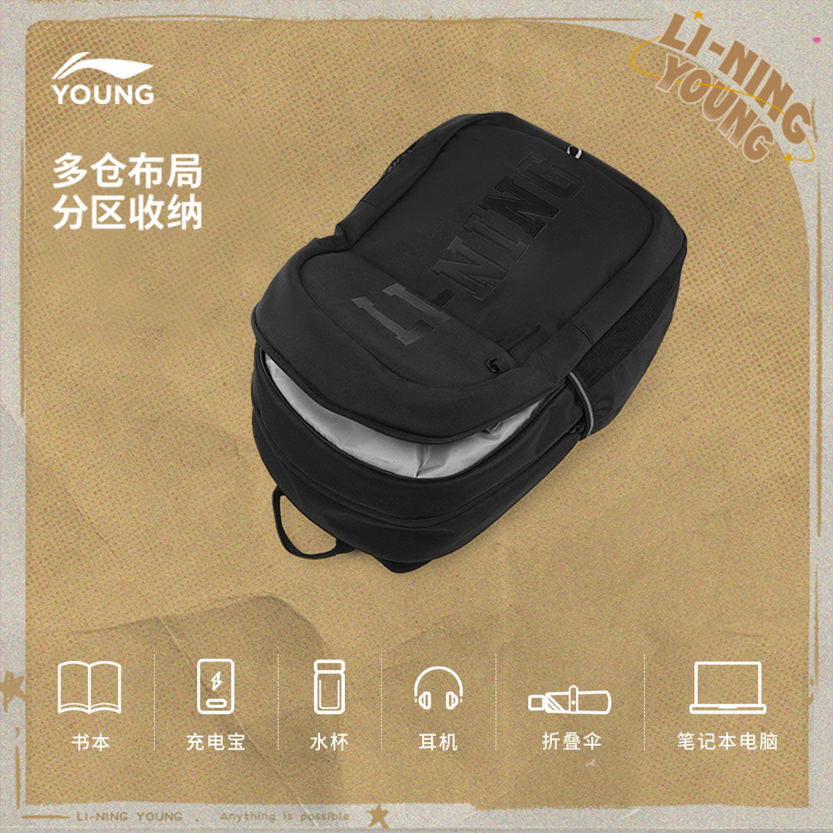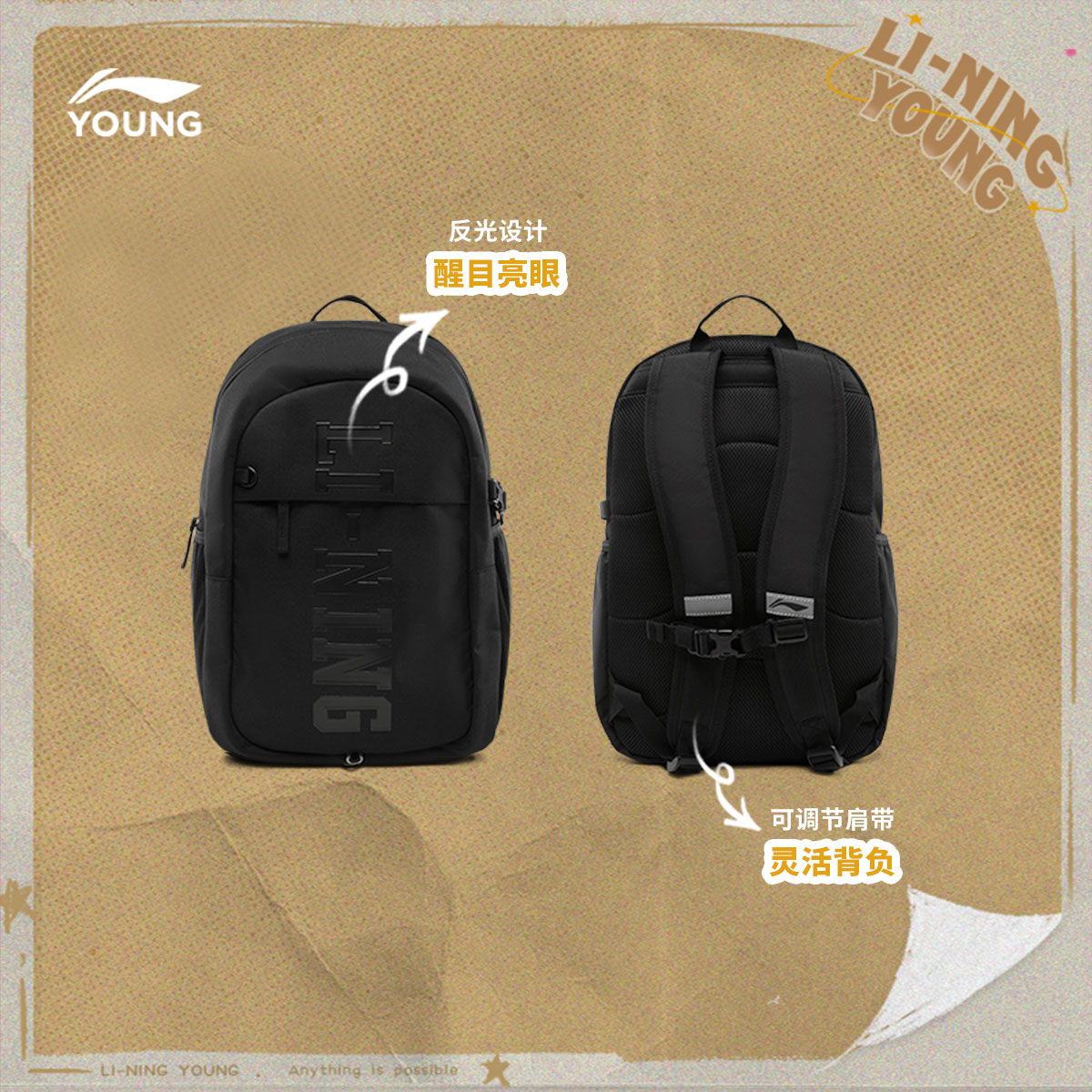 李宁童双肩包男女大童2025新款运动生活系列青少年书包反光运动包