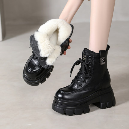 真皮雪地靴女羊皮毛一体2025新款冬季加绒加厚鞋厚底内增高马丁靴