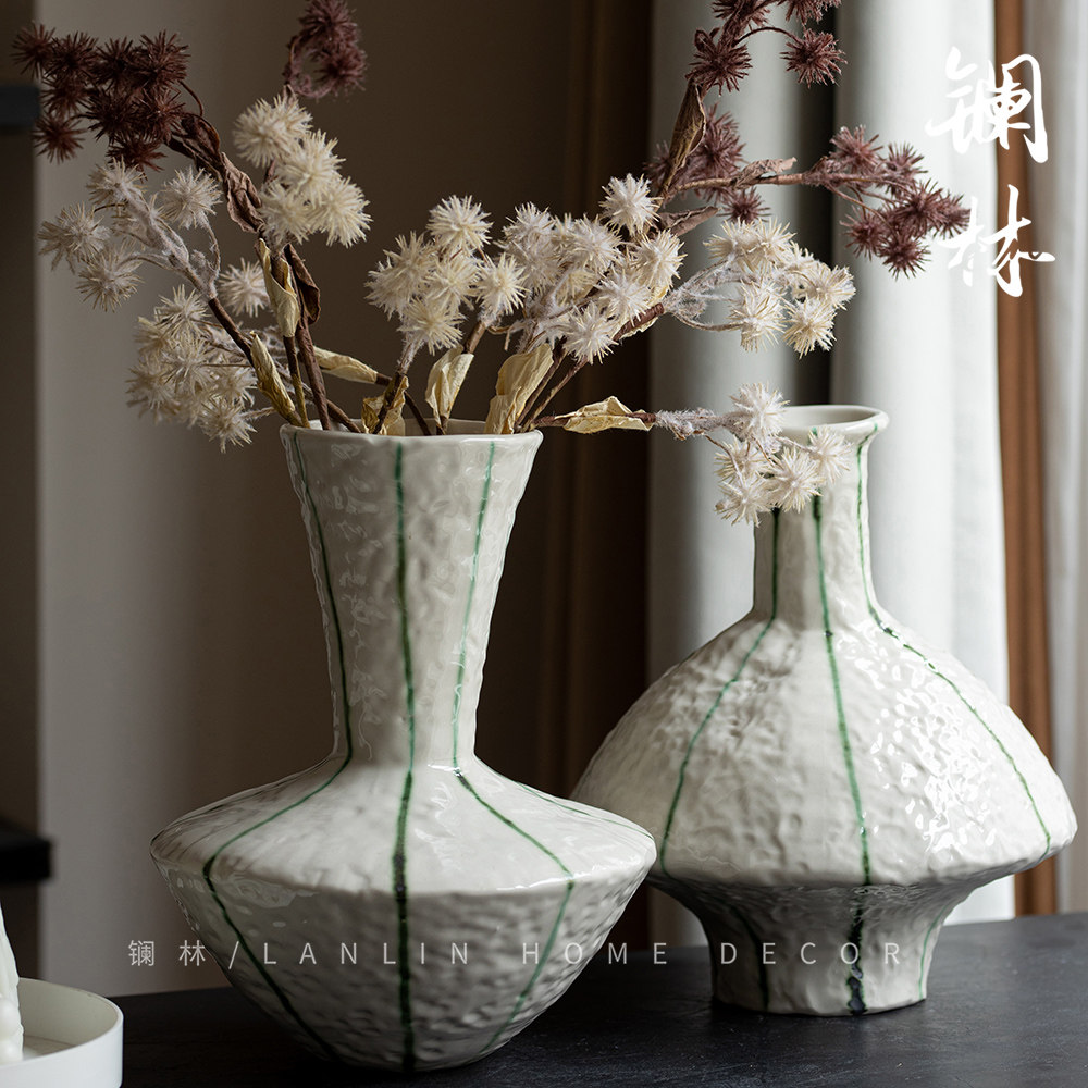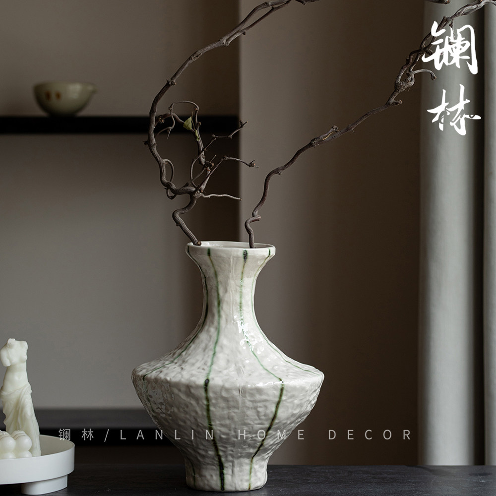 景德镇绿线条中古花瓶手工陶瓷客厅家居软装插花摆件艺术花器绿腰