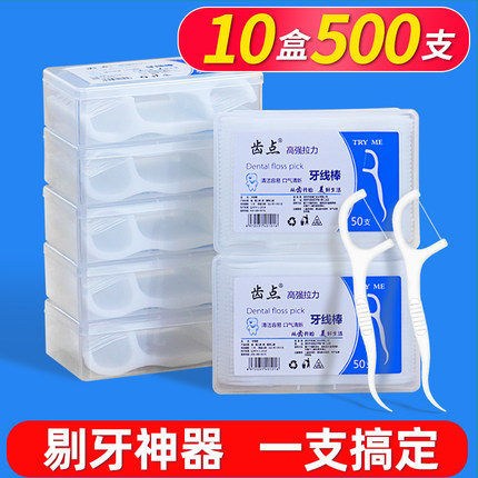 齿点细滑牙线超细盒装50支家庭装成人一次性剔牙线棒双头牙签便携