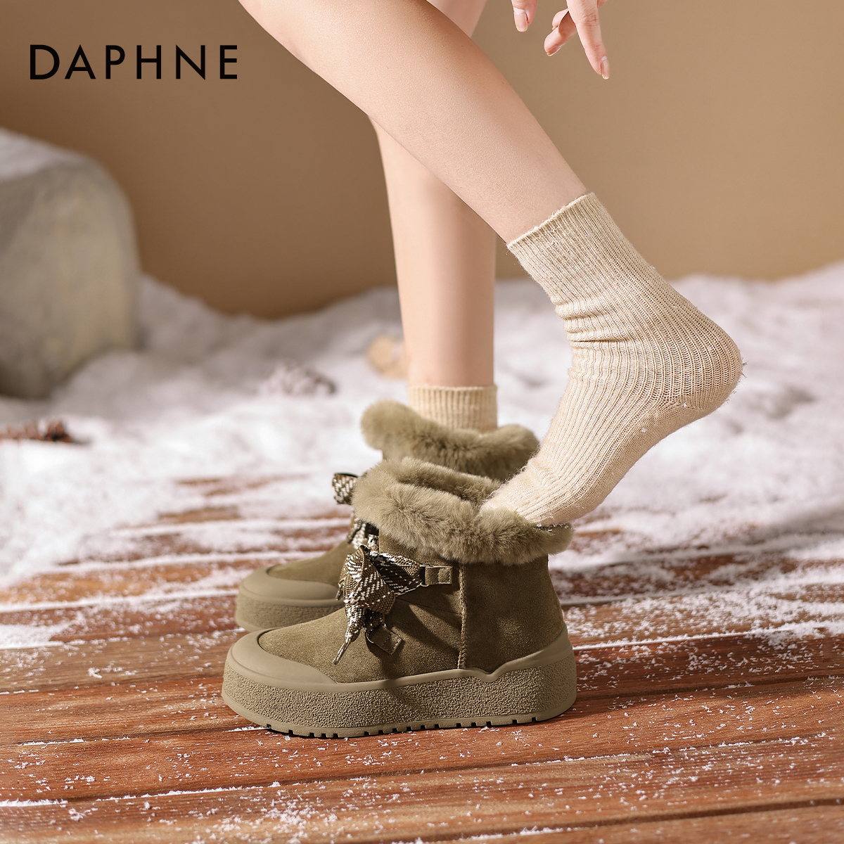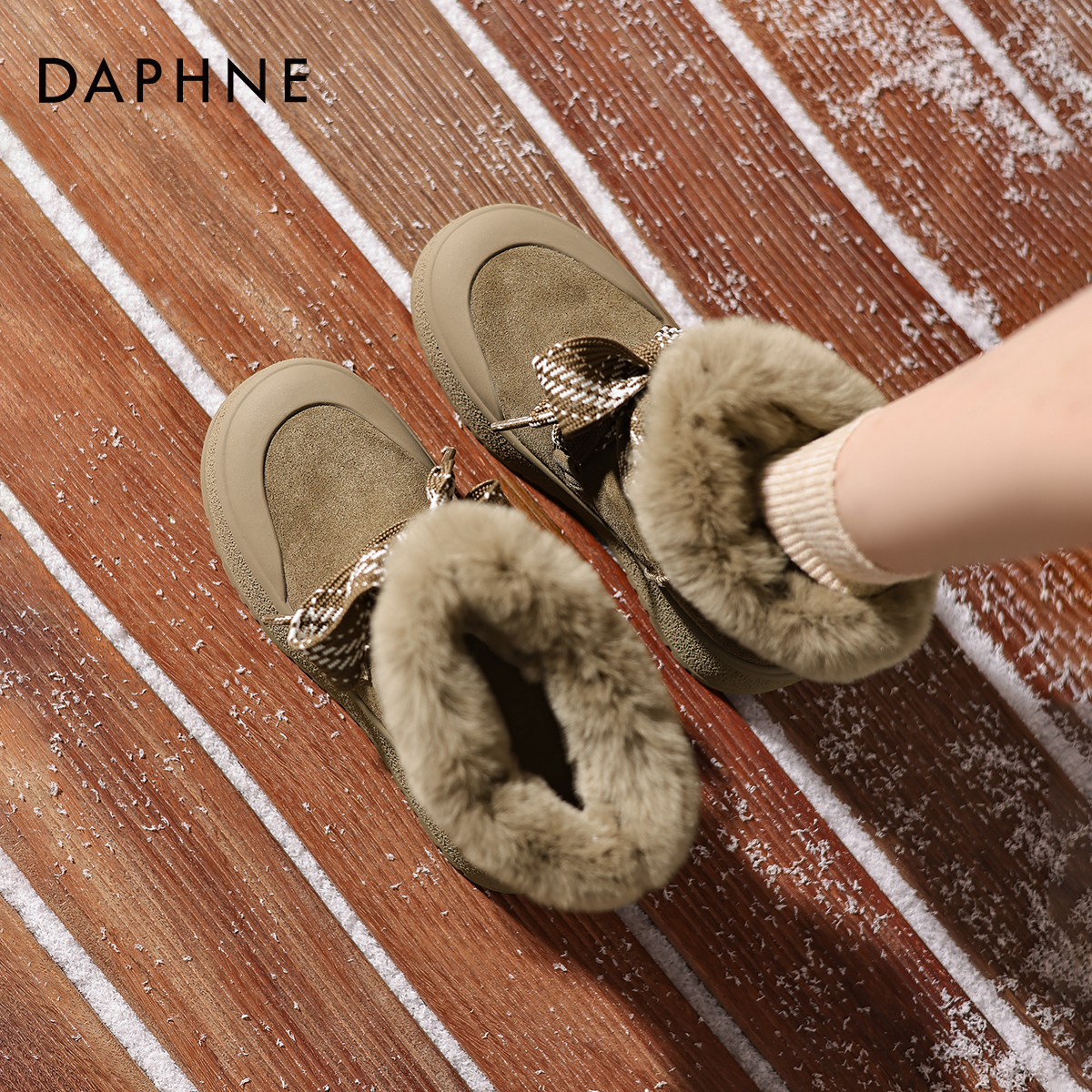 达芙妮厚底雪地靴女2025新款冬平底保暖短靴加绒加厚防滑面包棉鞋
