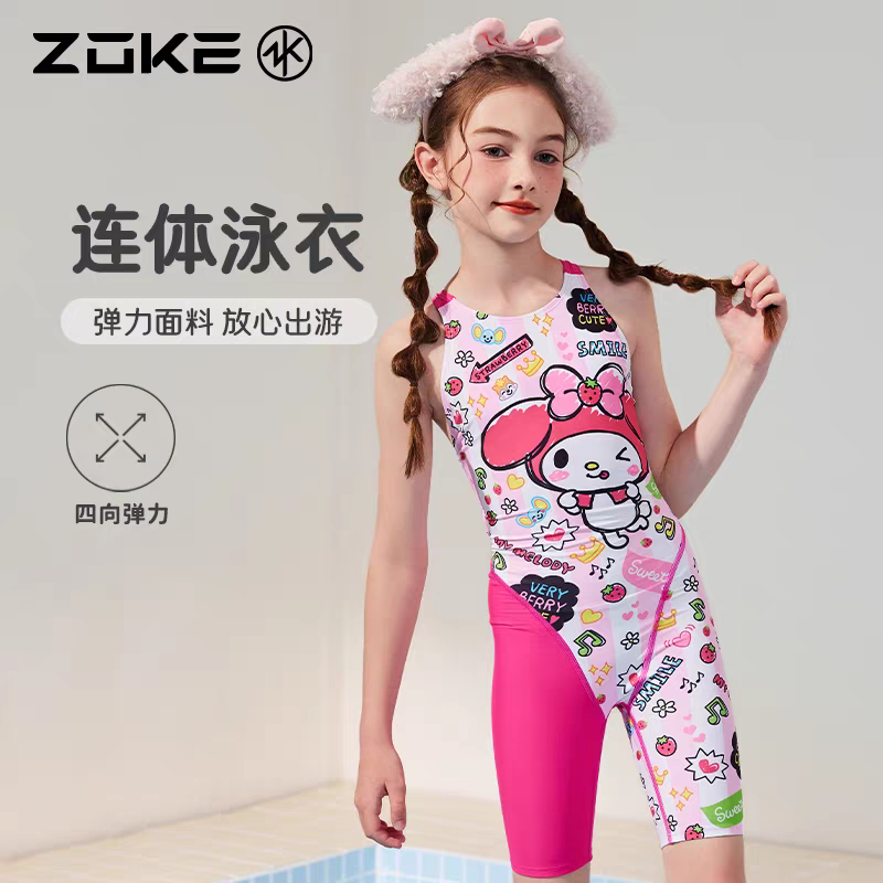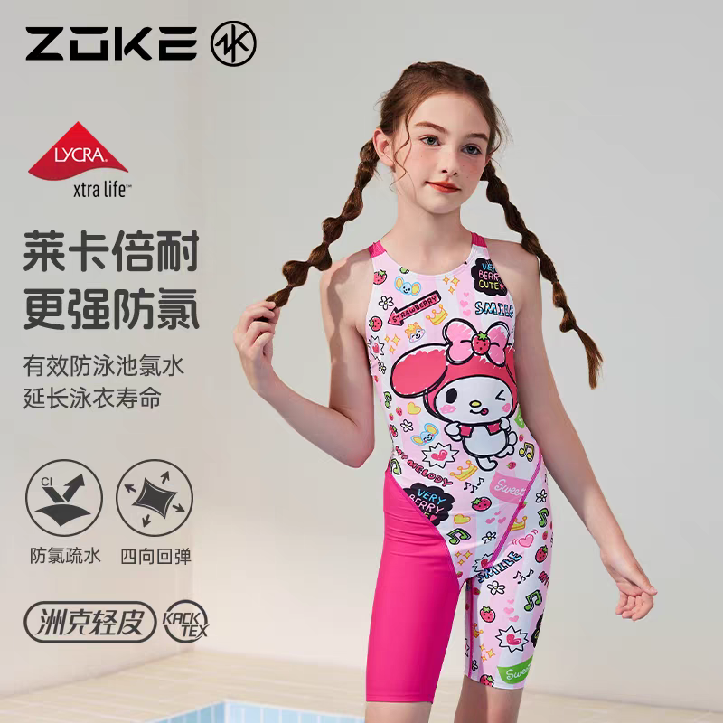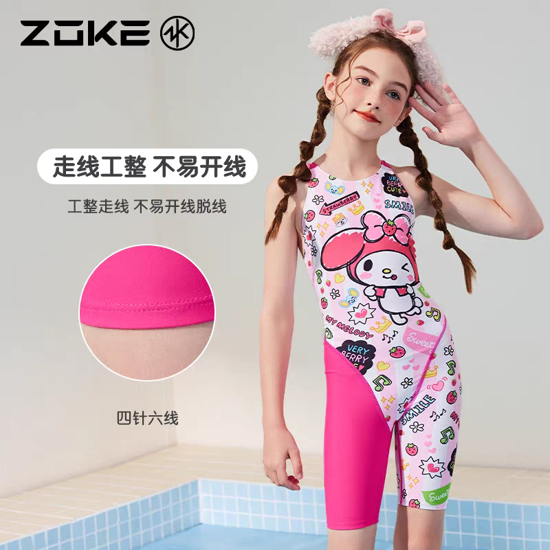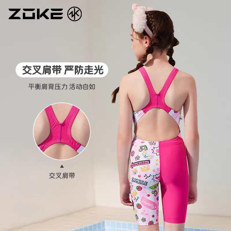 zoke洲克2025新款青少年儿童女童女孩专业训练比赛连体五分游泳衣
