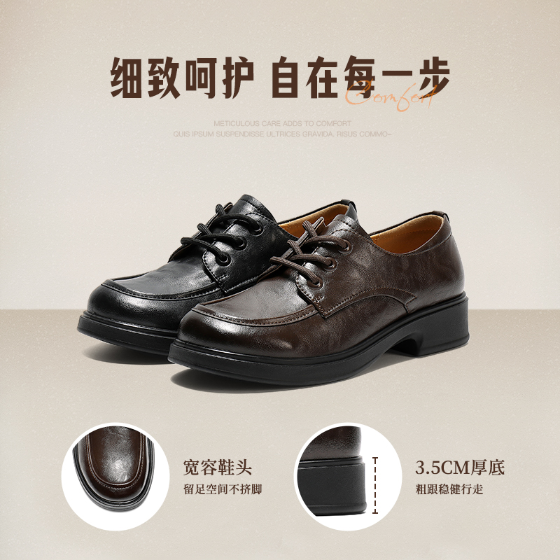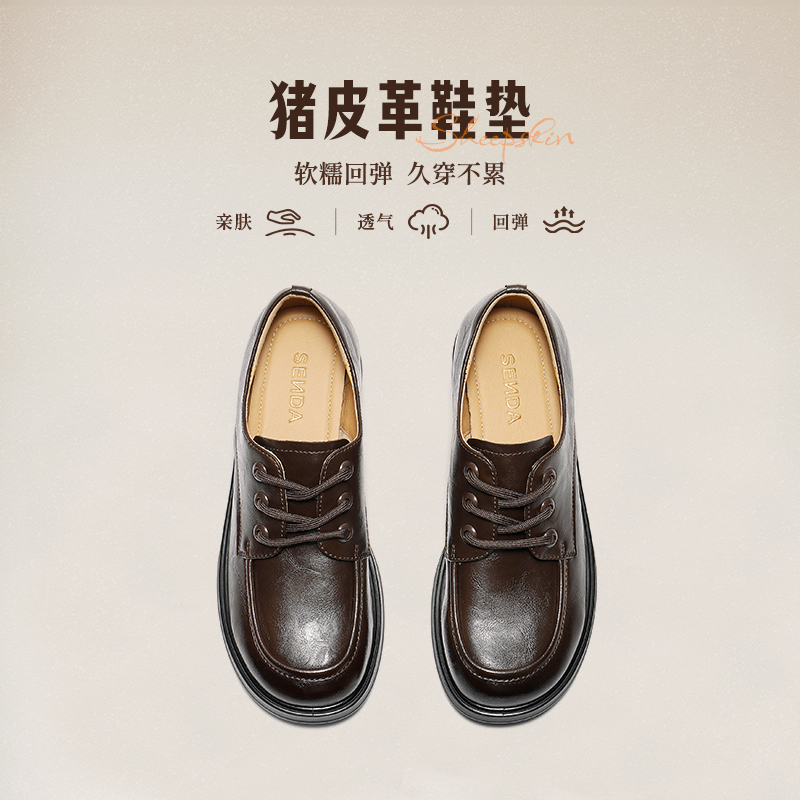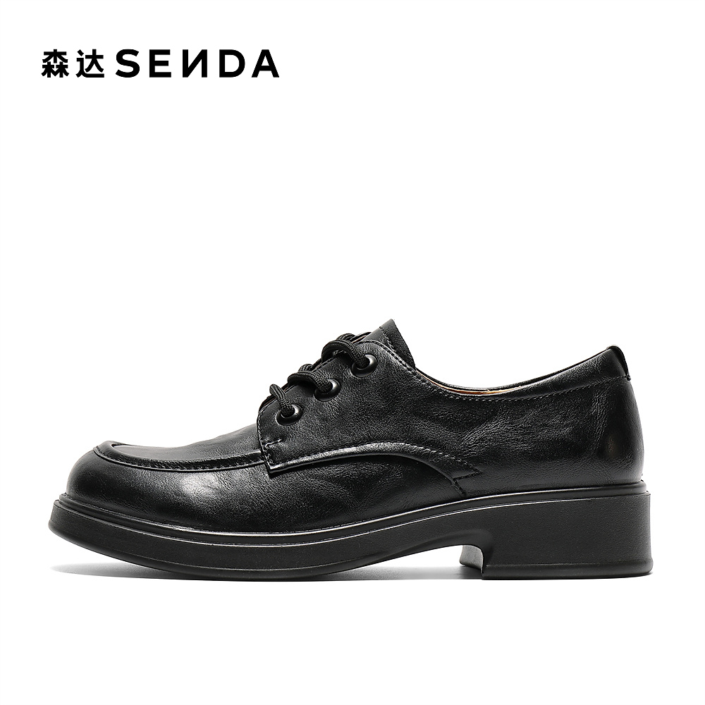 森达牛津鞋女2025新款增高厚底乐福鞋英伦风舒适通勤复古黑色单鞋