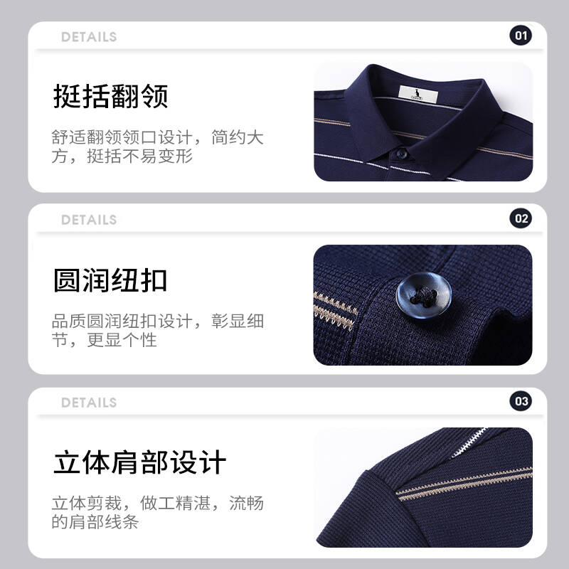 袋鼠男士polo衫爸爸装2025夏季新款短袖条纹翻领商务休闲t恤衫男
