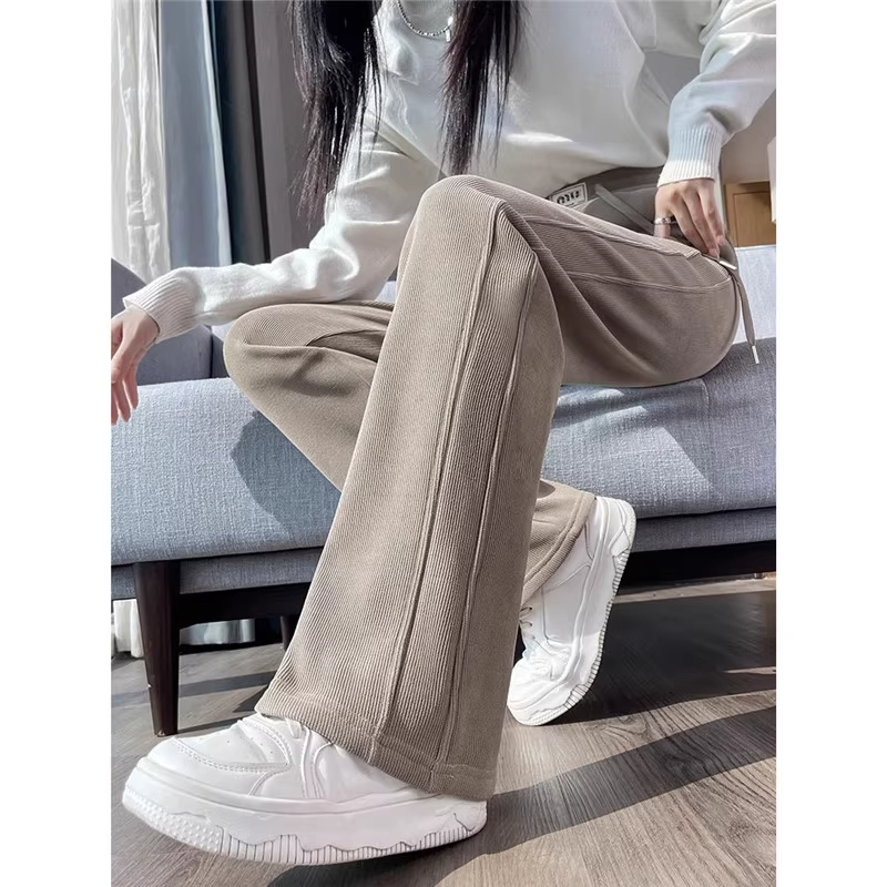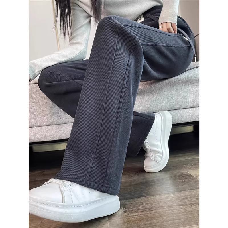 清仓捡漏窄版阔腿裤女垂感雪尼尔直筒休闲裤秋冬季加绒加厚香蕉裤