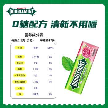 绿箭(DOUBLEMINT)无糖薄荷糖玫瑰花茶味约35粒23.8g/盒果肉条