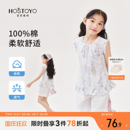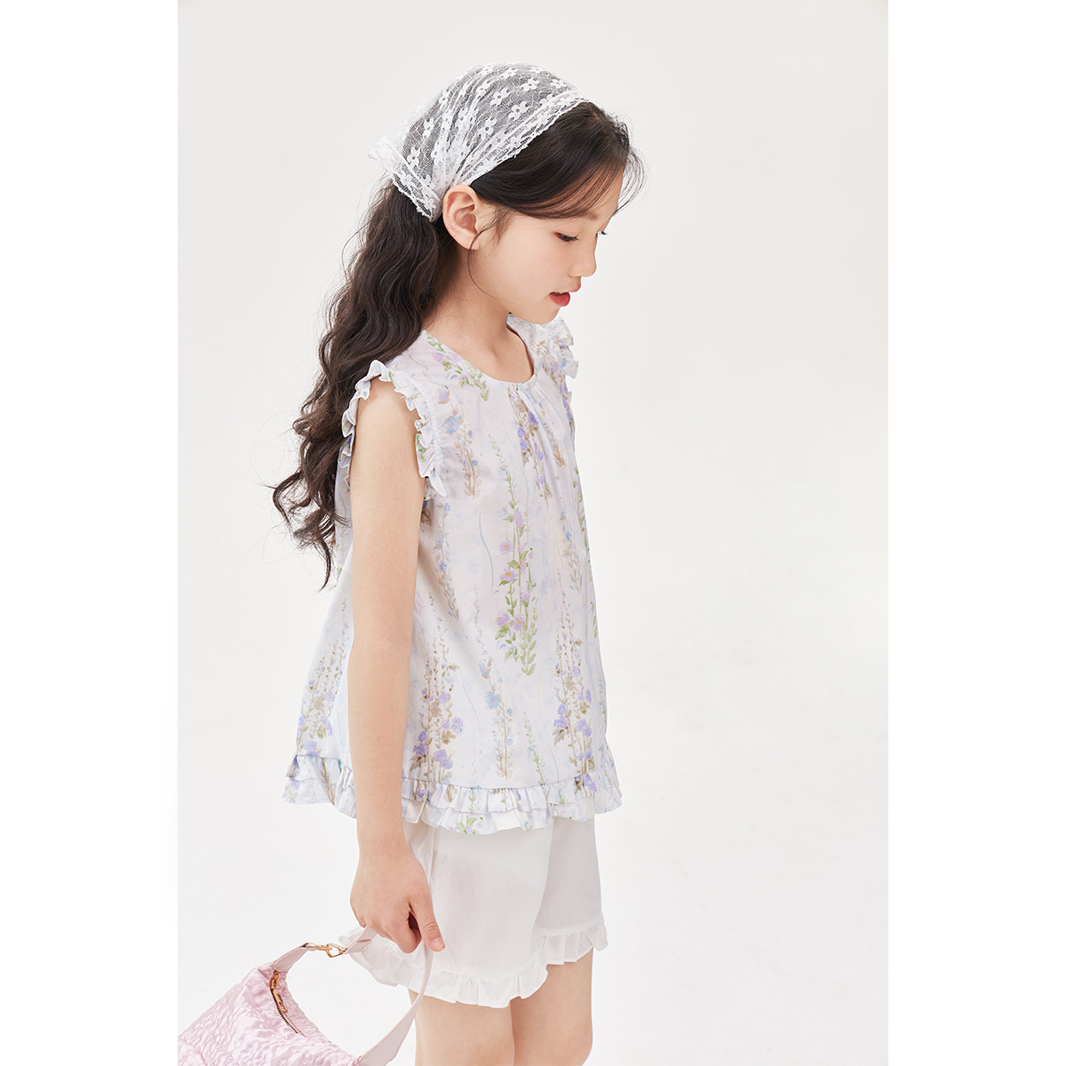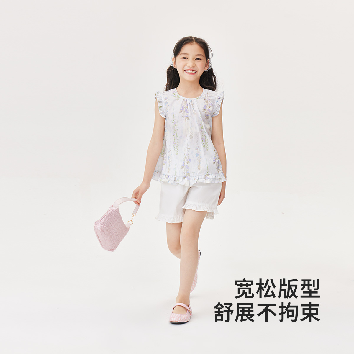 皇室童缘女童甜美娃娃衫套装2025夏季新款女宝小衫上衣短裤两件套