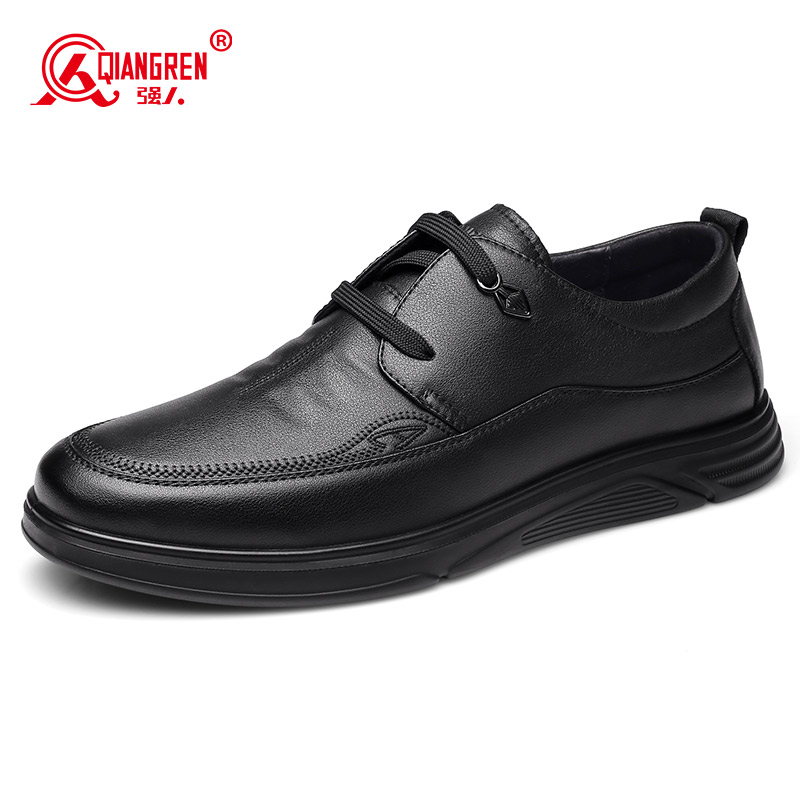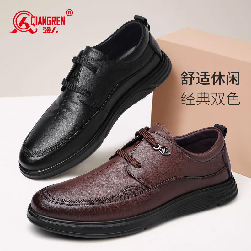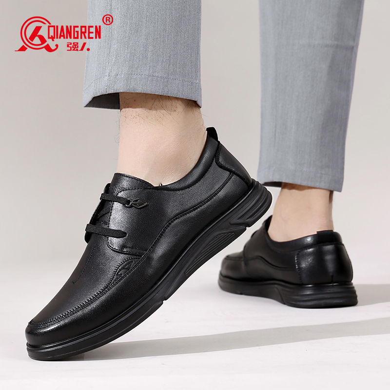 强人3515男鞋休闲皮鞋圆头系带商务皮鞋中老年爸爸鞋男士皮鞋透气