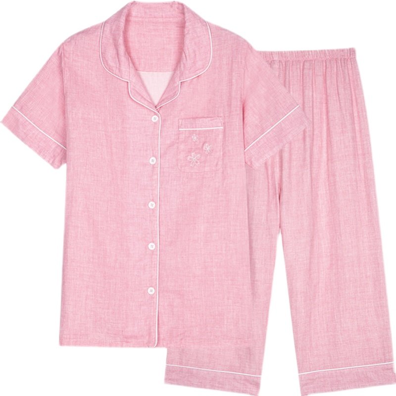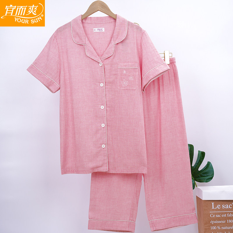 宜而爽女士翻领短袖七分裤睡衣