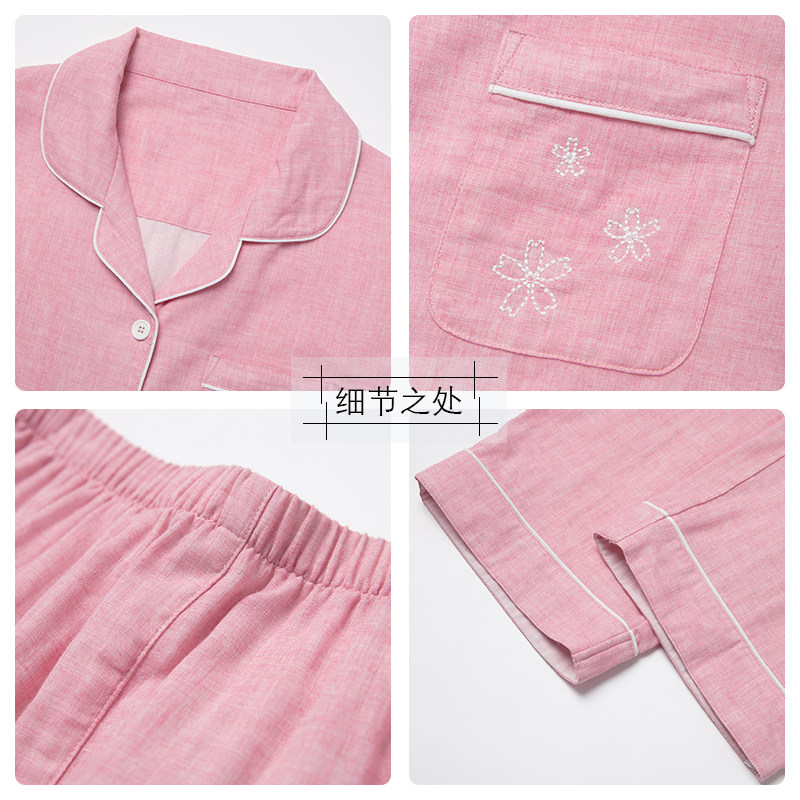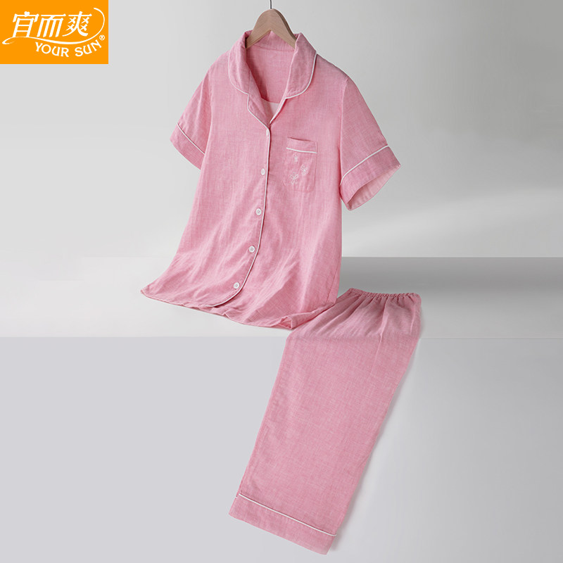 宜而爽内衣男女士夏季薄款双层纱布家居服纯棉情侣款短袖睡衣套装