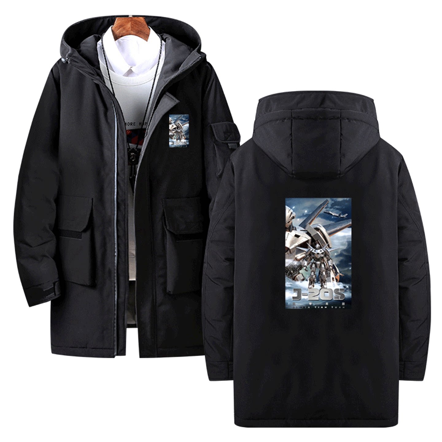 国潮动漫机甲纪元J-20S变形战术机甲威龙男女可定制中长款羽绒服