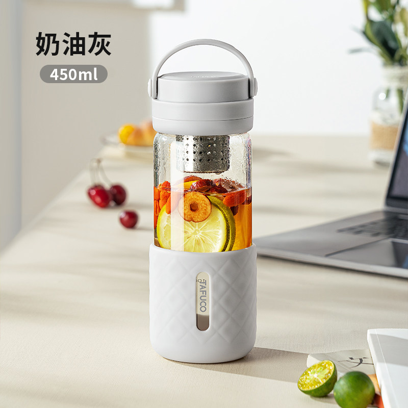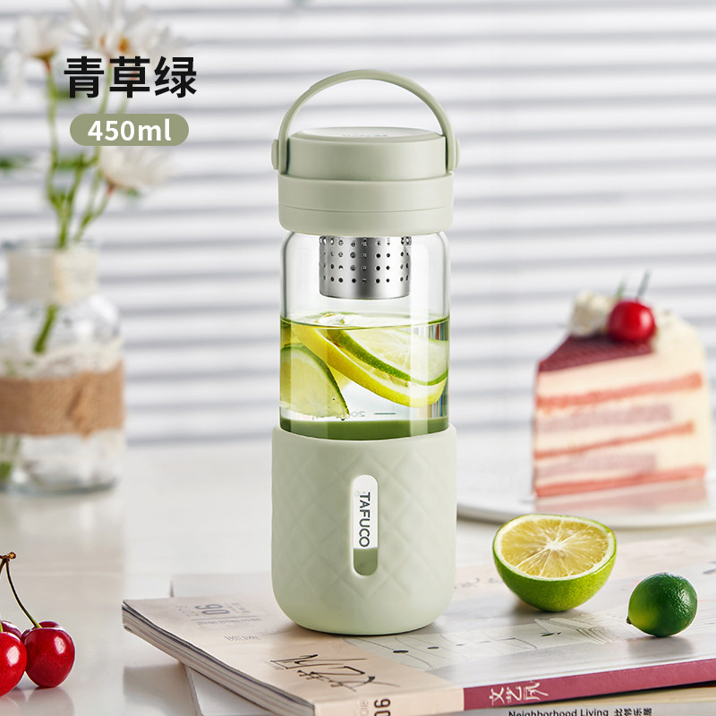 日本泰福高茶水分离泡茶杯便携水杯户外耐热玻璃杯隔热过滤随手杯