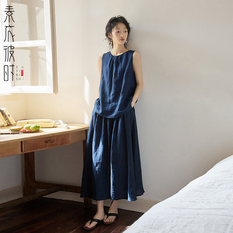 素衣彼时3392夏季女士亚麻无袖小衫半裙纸样宽松百搭长裤套装样板