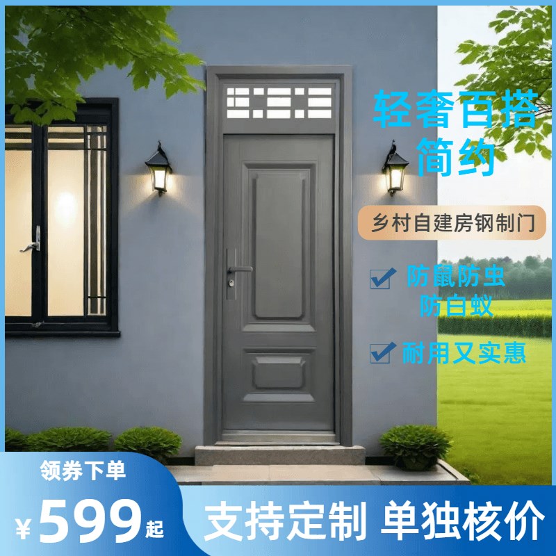 大门农村自建房双扇附窗公寓办公室单开灰色钢质工程防盗门子母门