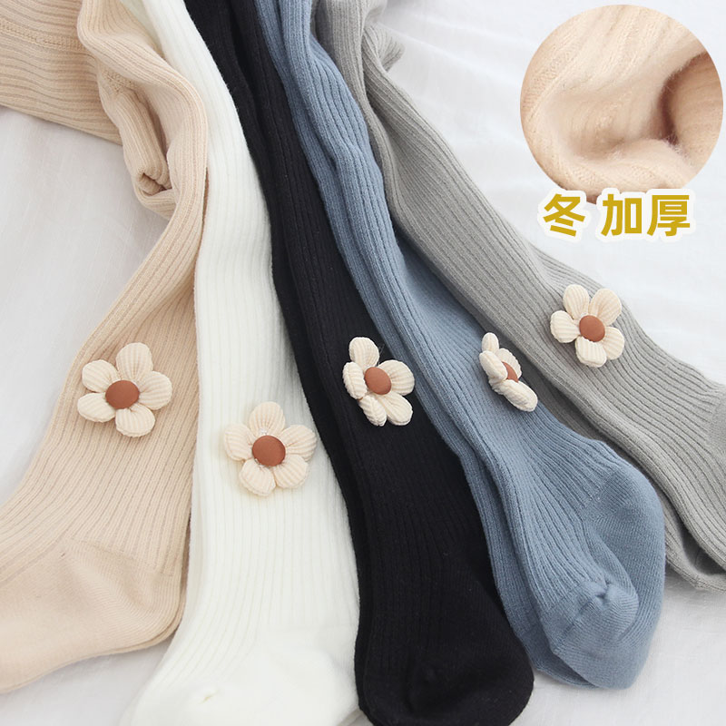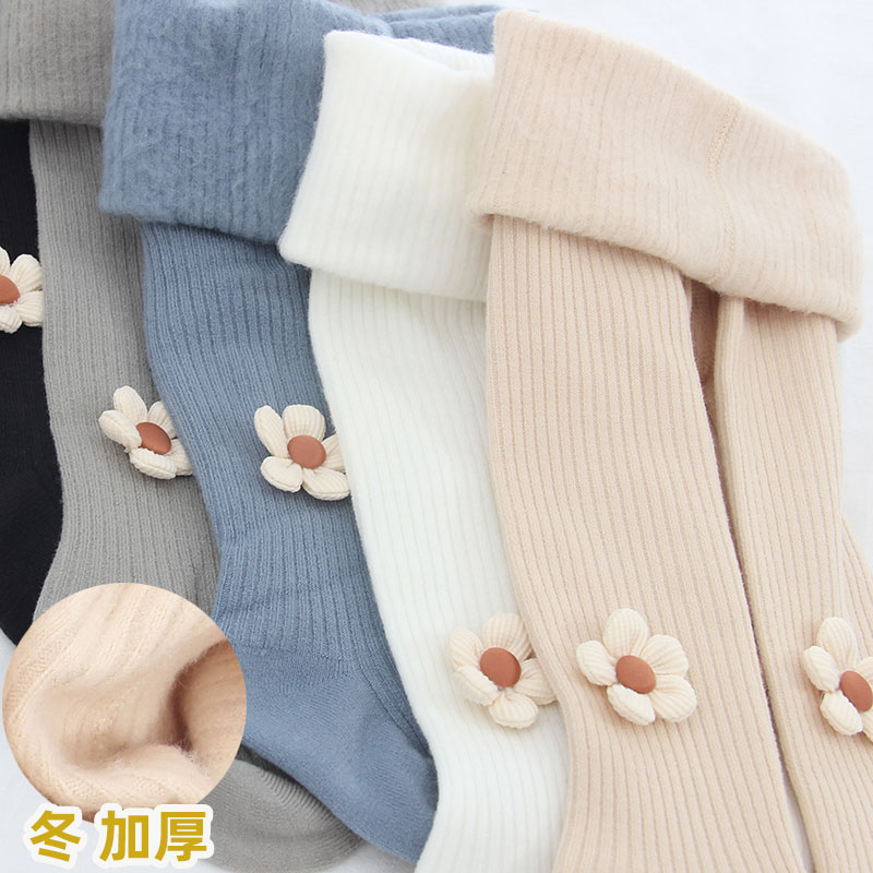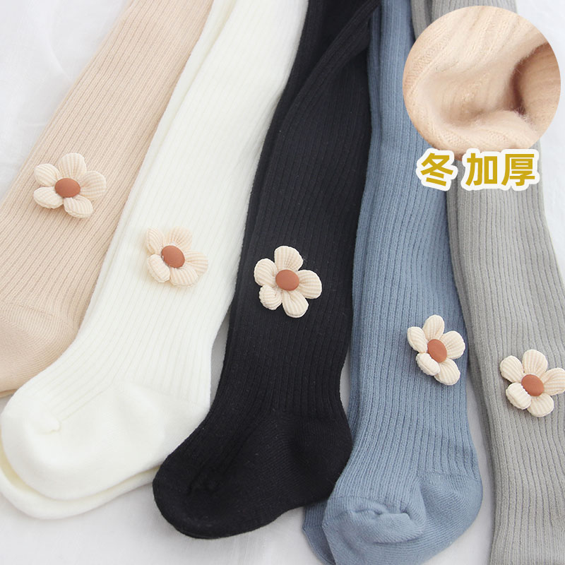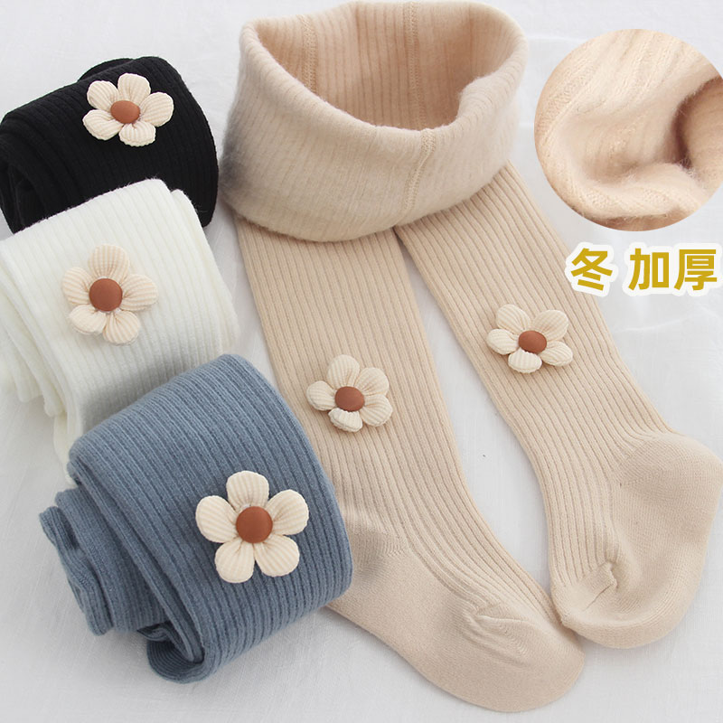 婴儿秋装加薄绒连裤袜女童坑条修身打底袜白色新生宝宝连体裤冬季