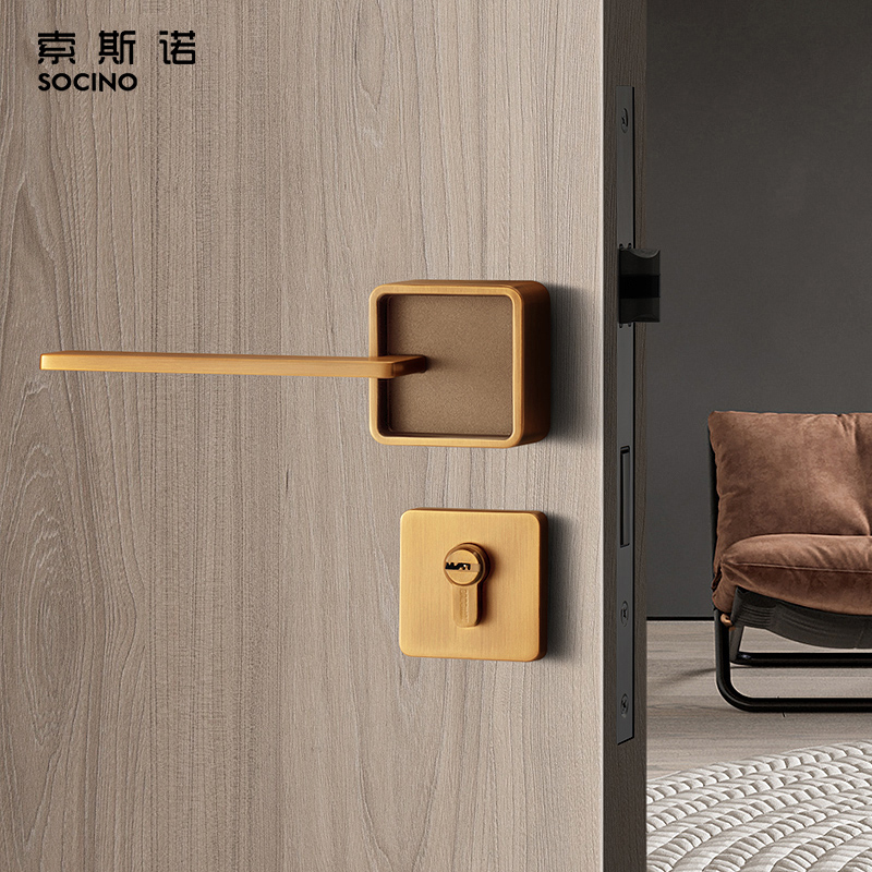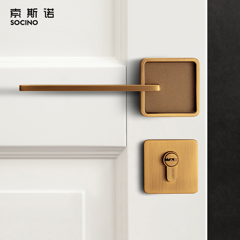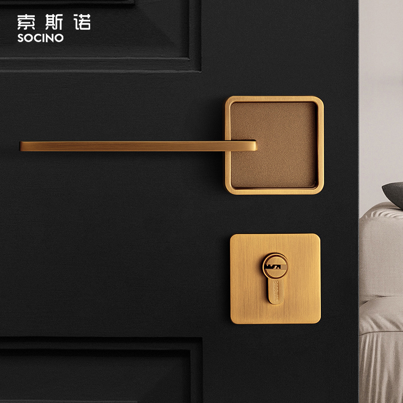 索斯诺卧室门锁室内简约北欧磁吸门锁美式静音门锁黄古铜房间门锁