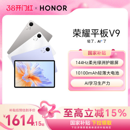 【政府补贴15%】HONOR/荣耀平板V9 新品平板电脑 144Hz高刷屏 超轻薄长续航 学习机办公学生官网官方旗舰店