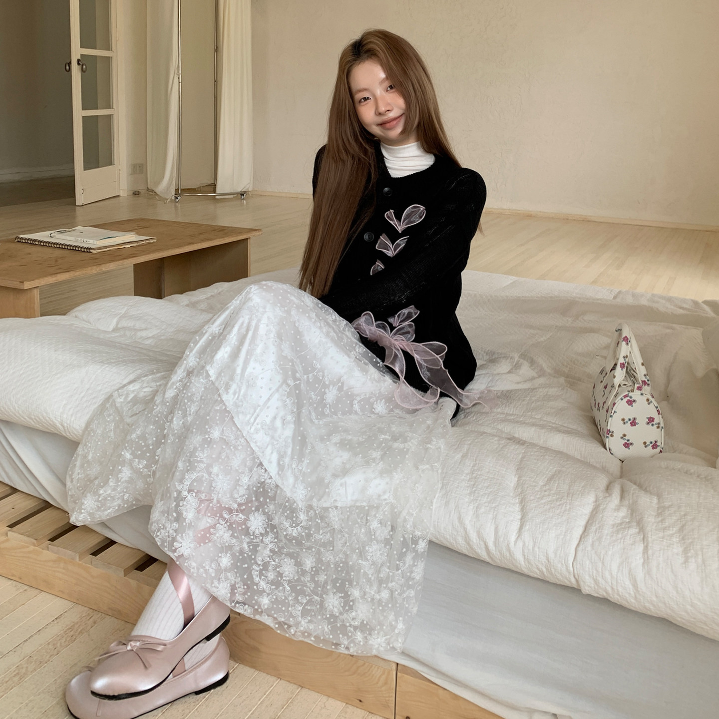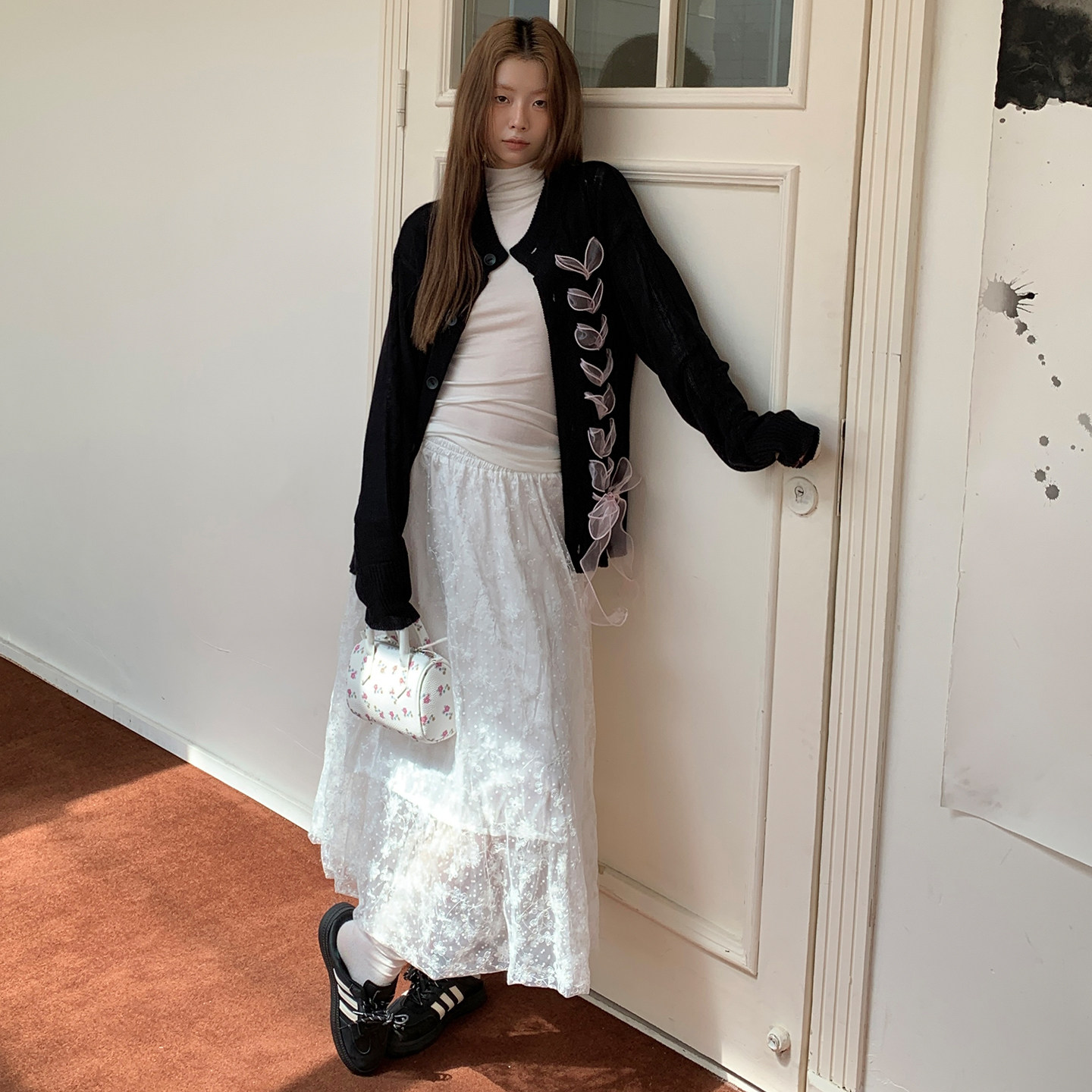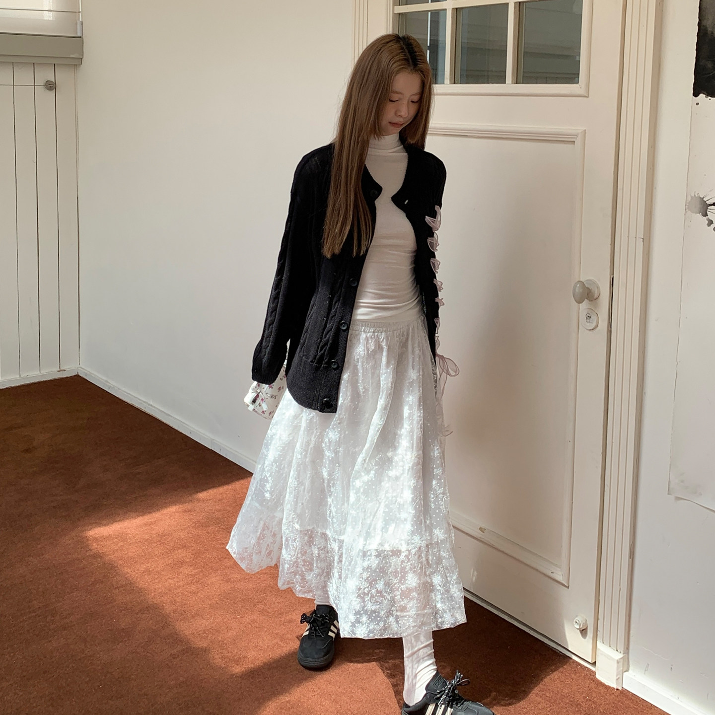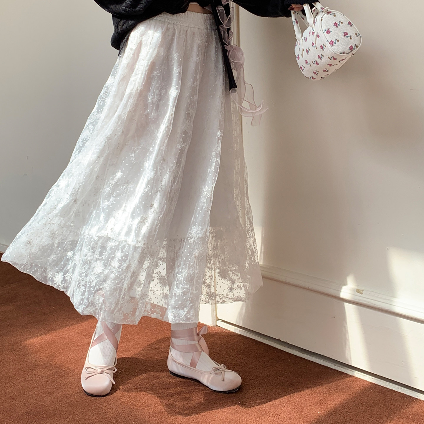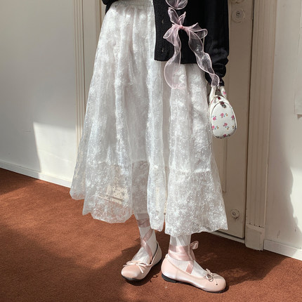 尺尺间Lsland韩系白色蕾丝半身裙女秋新款设计感a字显瘦中长半裙