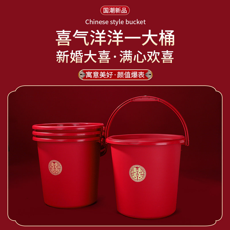 结婚喜桶家用塑料桶水桶婚礼女方陪D嫁子孙桶手提米桶婚庆用品大