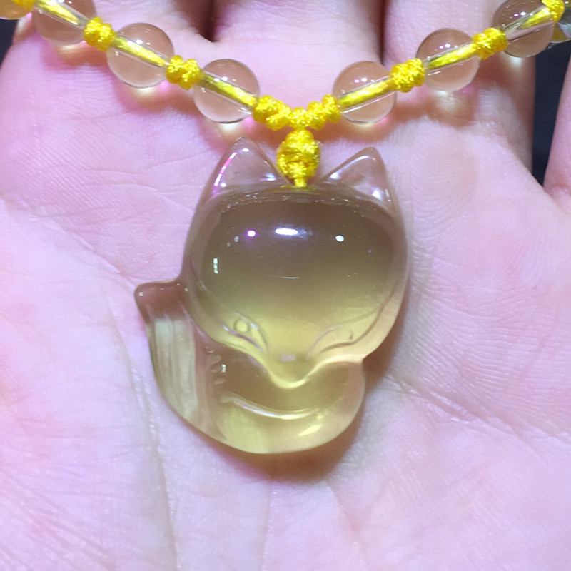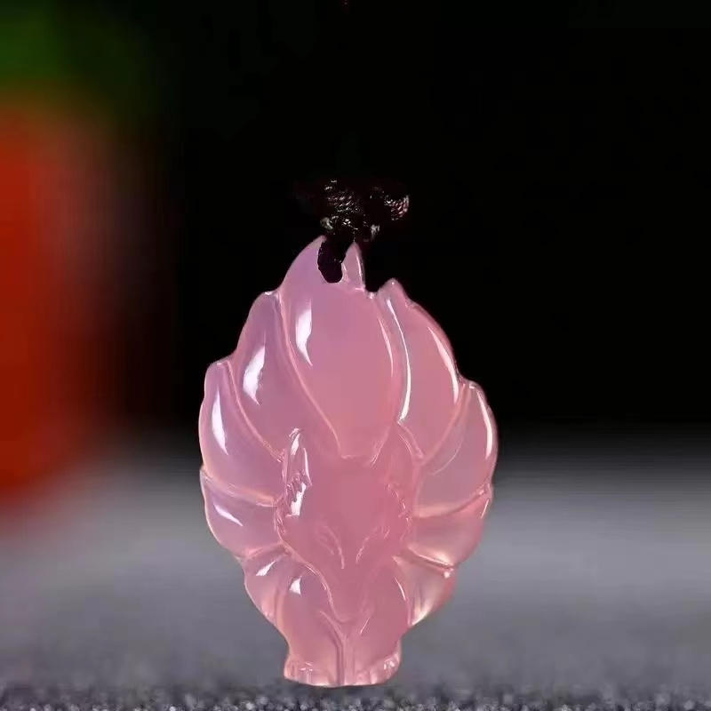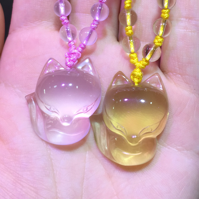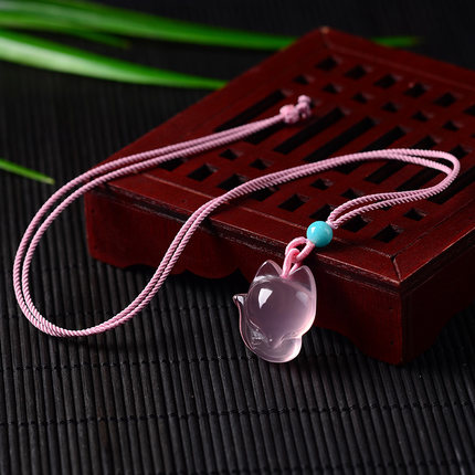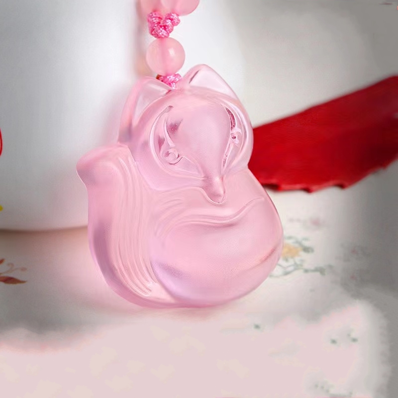 甜美粉晶小狐狸招桃花朱砂吊坠