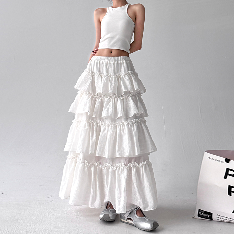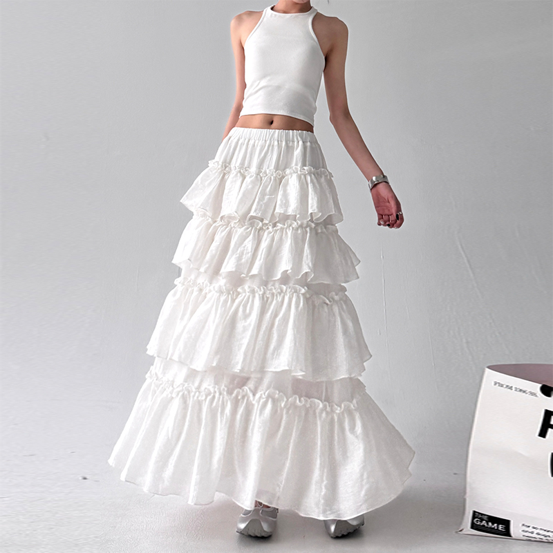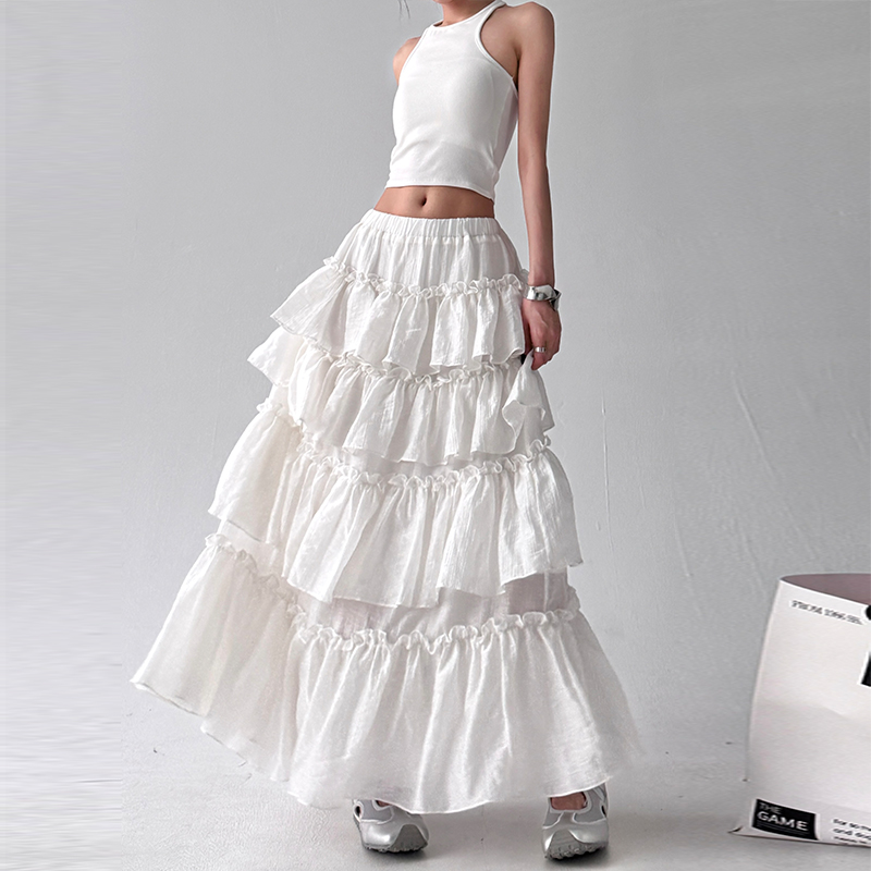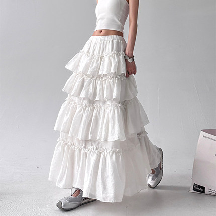 2025春夏新款韩版时尚不规则百搭蛋糕裙女宽松高腰显瘦A字半身裙